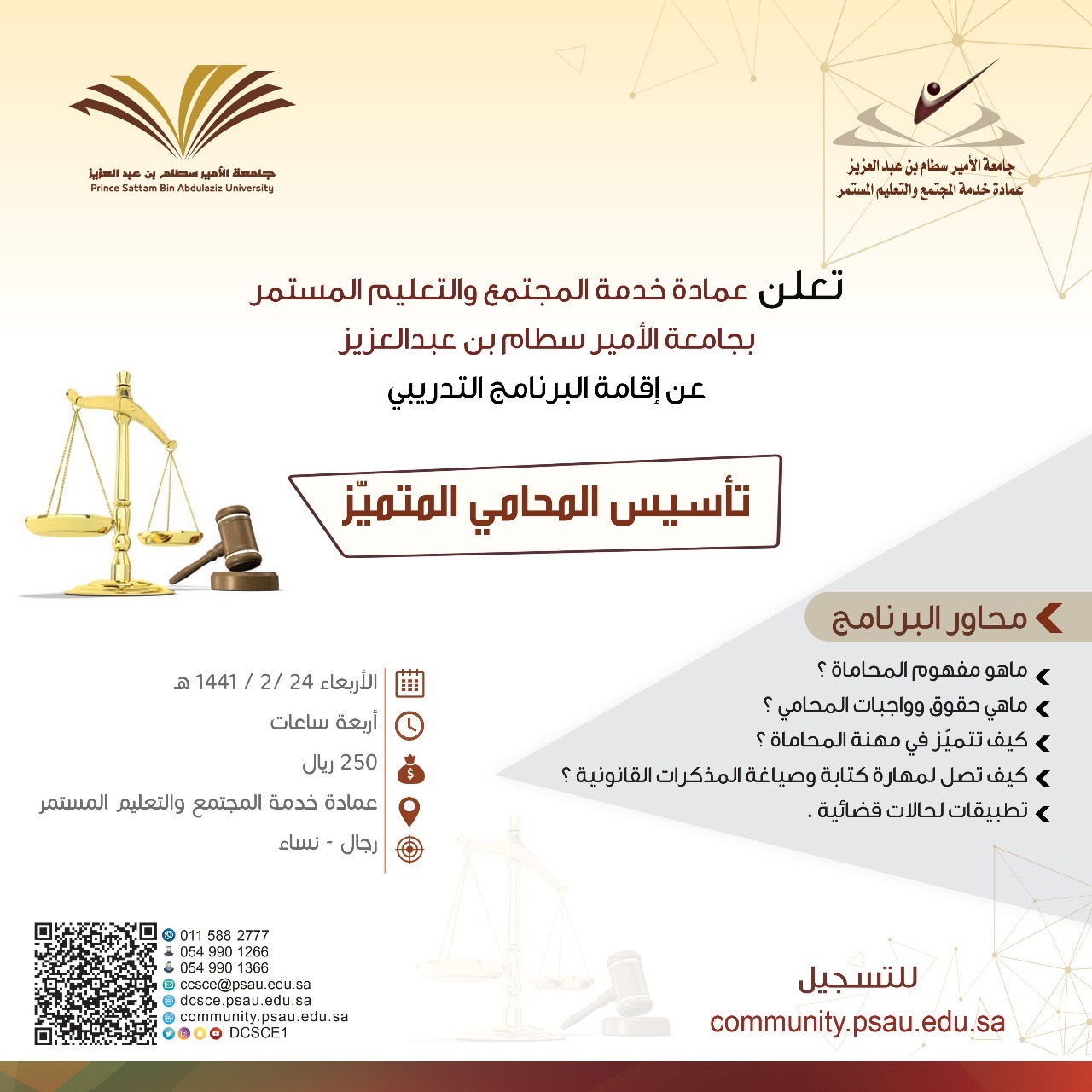 تعلن عمادة خدمة المجتمع والتعليم المستمر بجامعة الأمير سطام بن عبدالعزيز