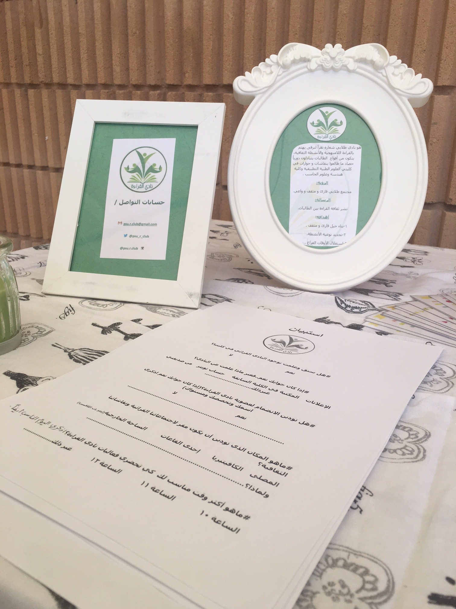 أقامت عضوات نادي القراءة والمصلى (ليبقى النور) بكلية العلوم الطبية التطبيقية لهذا العام الجامعي 1438/1437هـ أركاناً تفاعلية لتعريف بالأندية ورؤيتها وأهدافها وفتح عضوية التسجيل . حيث يهدف نادي القراءة تشجيع الطالبات على القراءة والإسهام في تكوين مجتمع مثقف واعي. كما يهدف نادي المصلى ( ليبقى النور) لعمل أنشطة متنوعة بقالب للنفس وكسر الروتين والتذكير بالمناسبات الدينية والتوعوية.
