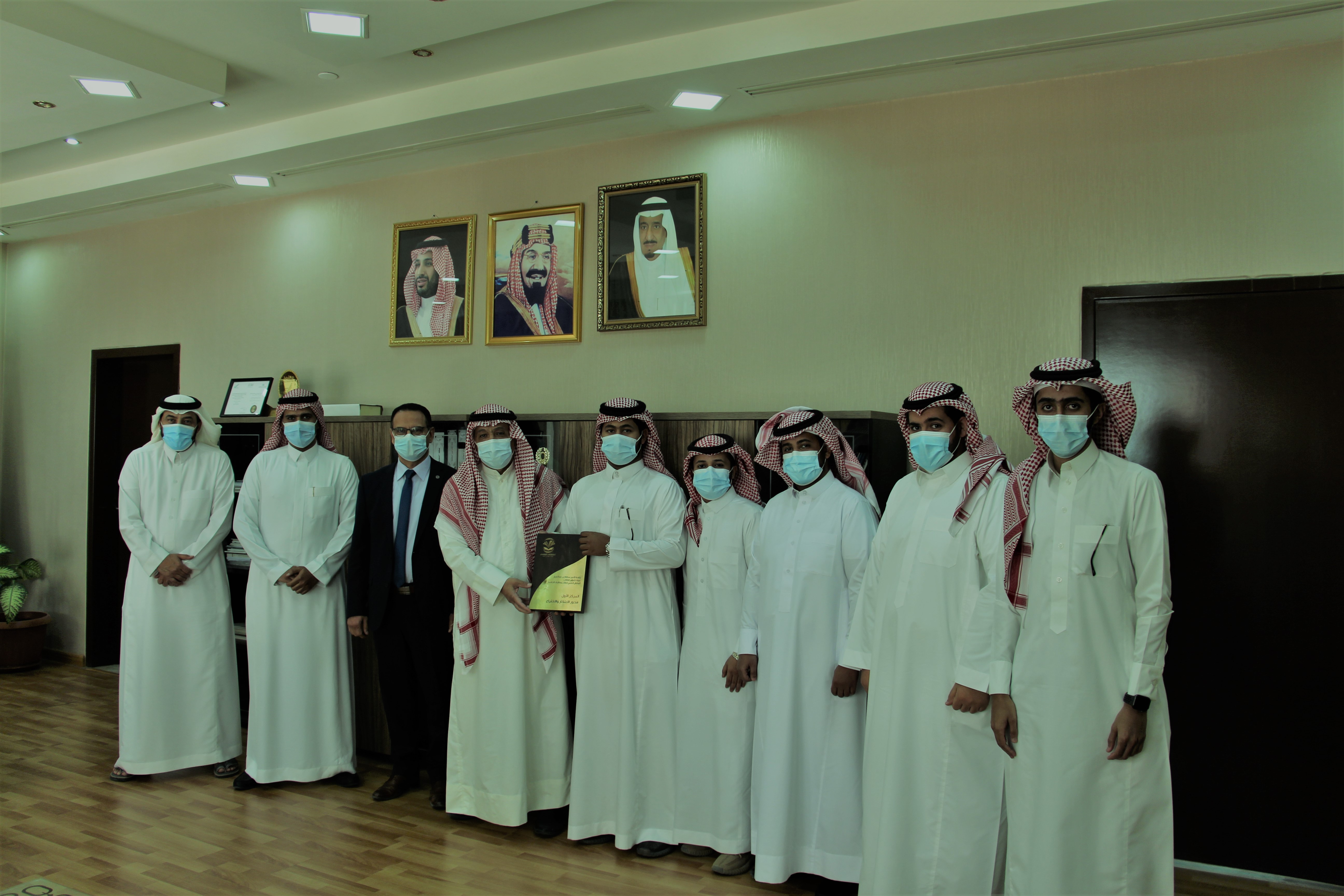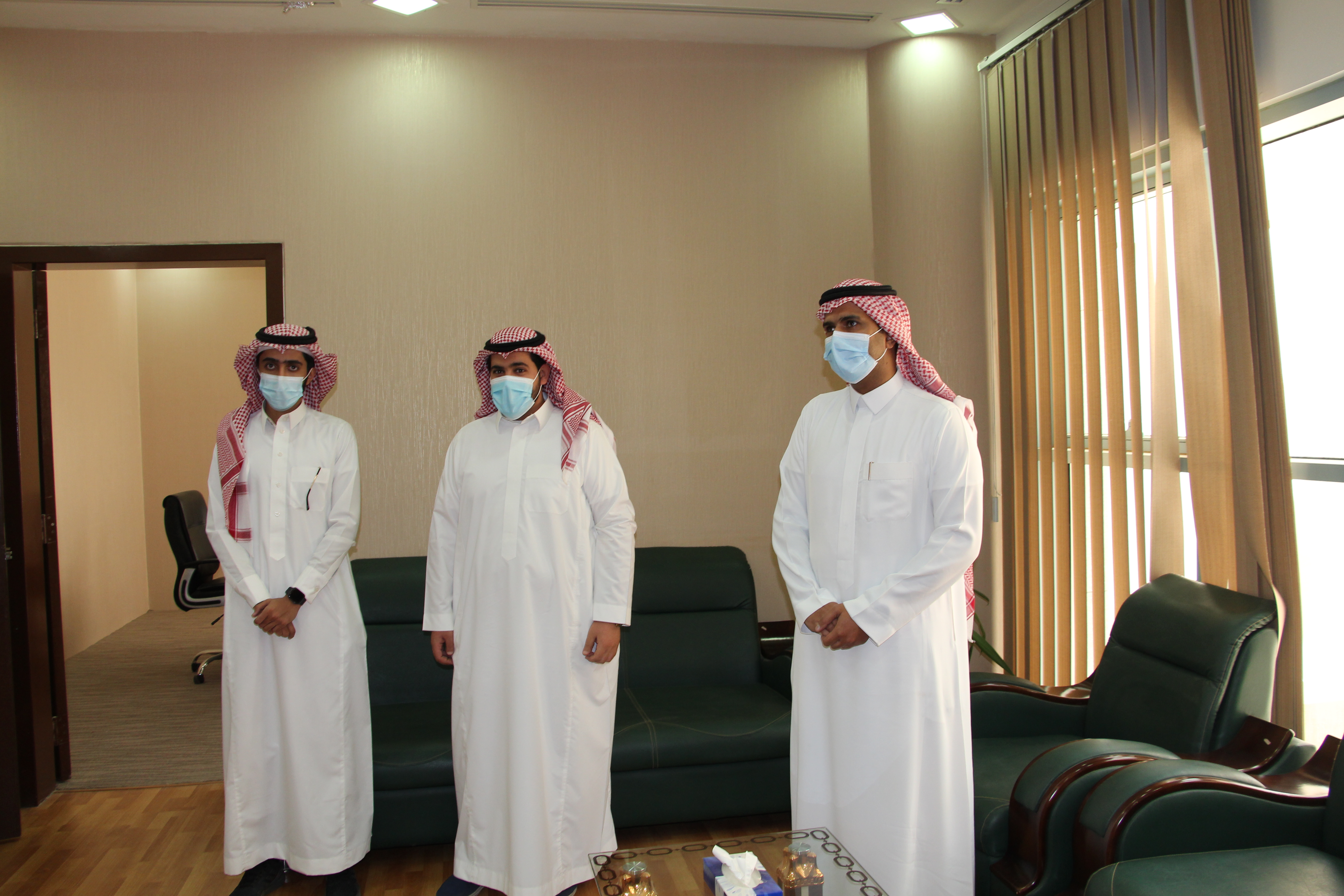 استقبل سعادة عميد كلية العلوم الطبية التطبيقية أ. د/ ماهر بن مفضي العنزي بمكتبة، يوم الأحد 15/8/1442هـ ، طلاب قسم تقنية الأجهزة الطبية الحيوية بكلية العلوم الطبية التطبيقية الحاصلين على المركز الأول بمحور "الإبتكار والإختراع"، في الملتقى العلمي الذي أقيم في العام الجامعي الحالي 1442هـ، بتنظيمٍ من عمادة شؤون الطلاب وبرعايةٍ كريمة من معالي رئيس الجامعة أ. د. عبد العزيز بن عبد الله الحامد، وبحضور كل من سعادة وكيل الكلية د/ سعود بن معشي الرويلي وسعادة رئيس قسم تقنية الأجهزة الطبية والحيوية د/ يوسف بن سالم الحربي ، وسعادة المشرف على الطلاب د/ سفيان الحبيب منصوري.