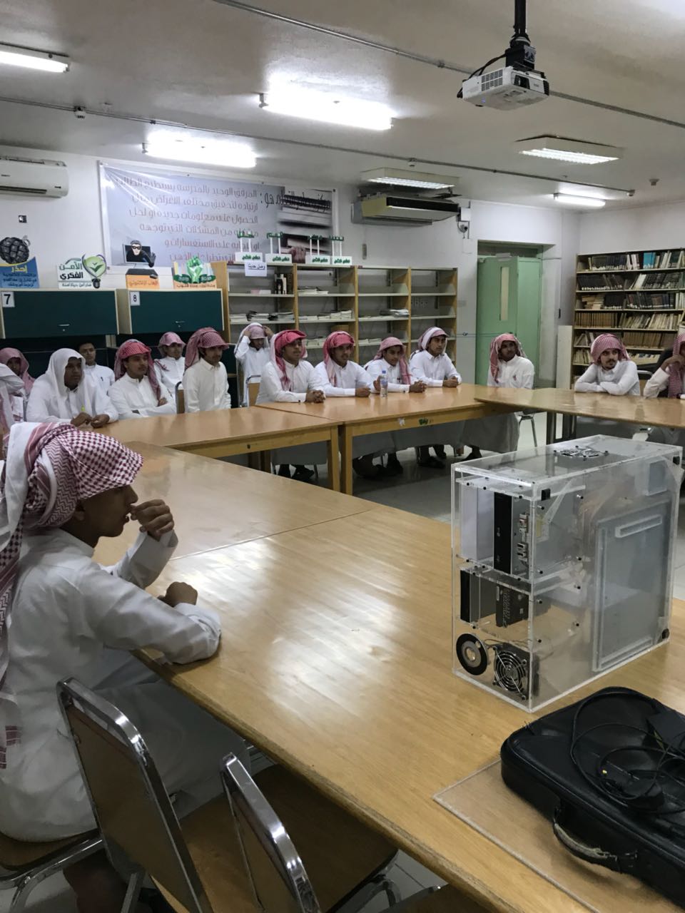 حيث تم يوم الأحد الموافق 1439/07/01هـ الموافق لـ 2018/03/18م زيارة ثانوية الملك فهد بالخرج وكان برنامج الزيارة كالتالي: نبذة عن التخصصات في الجامعة بشكل عام وفي كلية هندسة وعلوم الحاسب بشكل خاص والفرق بين تخصصات الكلية "هندسة الحاسب - علوم الحاسب- نظم المعلومات", تلي ذلك الحديث عن الحماية والجرائم المعلوماتية قدمها الطالب معاذ الشهري، بعد ذلك شرح لمكونات الحاسب وطريقة عمله قدمها الطالب بادي عمار، وفي ختام الزيارة تم تقديم شرح للموشن جرافيك والمونتاج والتصميم الرقمي مع تطبيق عملي قدمه الطالب عبد الله الزهراني.