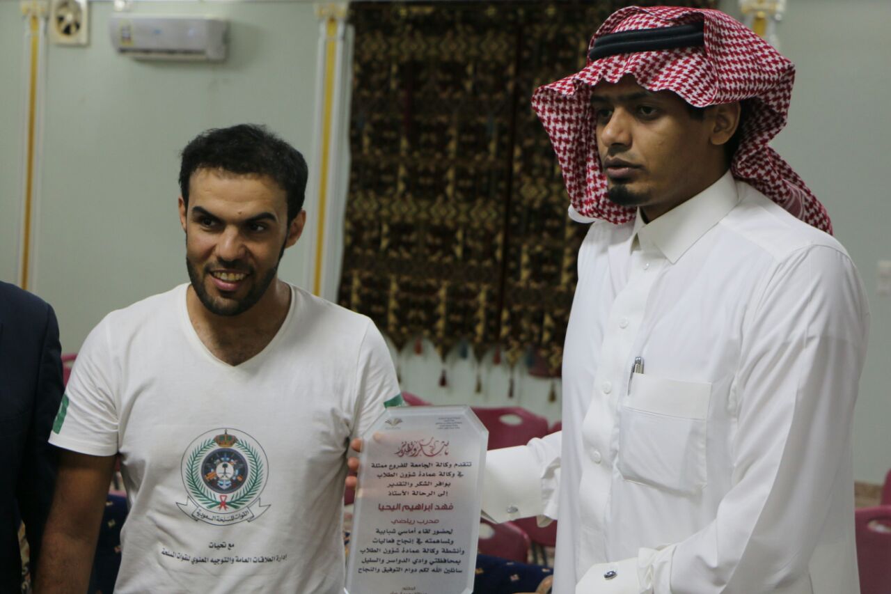 استقبل طلاب أماسي شبابية من كليات محافظتي وادي الدواسر والسليل في اللقاء الأسبوعي الرحالة السعودي فهد اليحيى حيث تخلل اللقاء إشادة وثناء من مشرف الأنشطة الطلابية الدكتور مسفر بن سعود الهرش على رسالة "اليحيى" السامية ، وحمله باقة ورد معطرة بالسلام لكافة أبطال جنودنا البواسل على الحد الجنوبي ، مؤكداً أن ما يقدمه الأبطال بالحد الجنوبي من تضحيات في الذود عن دينهم ووطنهم وسام شرف لكل مواطن سعودي.