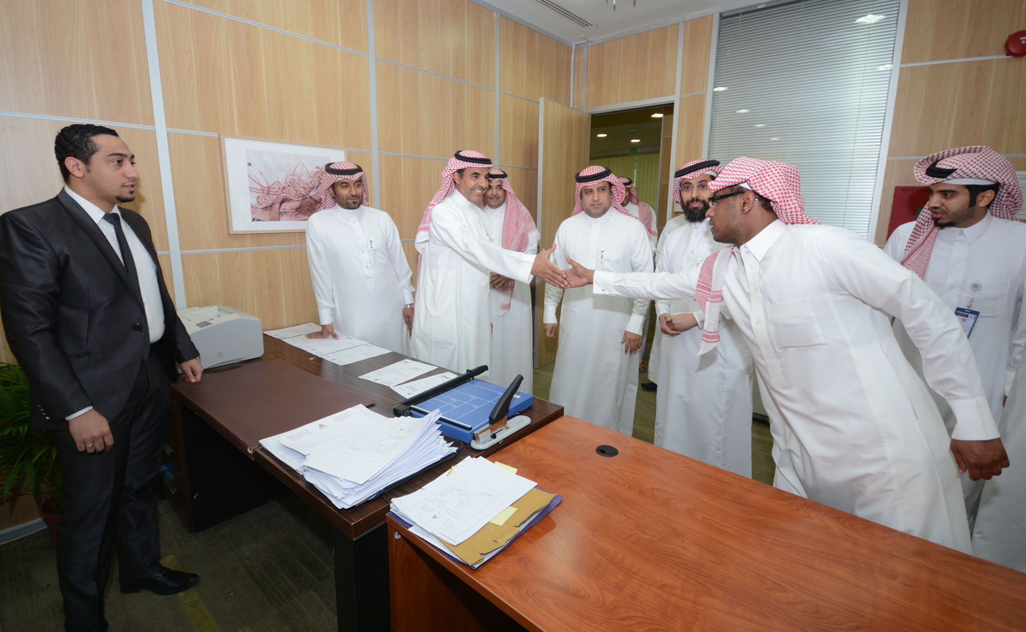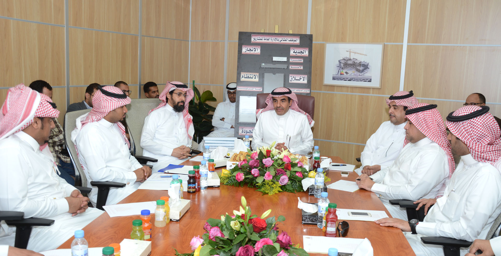 قام معالي مدير الجامعة الدكتور عبدالرحمن بن محمد العاصمي بزيارة تفقدية للإدارة العامة المشاريع بغرض الاطلاع على تقدم سير العمل في المشاريع العاجلة ، وكان في استقباله وكيل الجامعة والمشرف العام على إدارة المشاريع الدكتور عبدالله الجمعة ومساعده الدكتور فهد التميمي ، وقد بدأ الدكتور العاصمي جولته بزيارة للمكاتب الإدارية والاطلاع على سير العمل فيها والاستماع إلى شرح وافِ من الموظفين والمهندسين عن طبيعة عملهم وقد حثهم على بذل المزيد من الجهود من أجل تحقيق الأهداف المرسومة بجودة وإتقان ، بعد ذلك توجه الجميع إلى قاعة الاجتماعات ،حيث بدأ الاجتماع بعرض قدمه المهندس عبدالعزيز الجاسر استعرض فيه تقدم سير العمل في المشاريع العاجلة في كل من محافظة الخرج والحوطة والأفلاج والسليل والوادي كما تطرق إلى نسبة الإنجاز المحققة في كل مشروع ، واستعرض كذلك أبرز نقاط القوة التي ساعدت على تقدم العمل وجودته كما تعرض لأبرز العقبات التي وجدت الحلول المباشرة من معالي مدير الجامعة ، بعد ذلك ذكر الجاسر إلى إنه تم الانتهاء بالكامل من تجهيز الفصول الإضافية في كلية العلوم التطبيقية والتي أصبحت بذلك جاهزة لاستقبال الطلاب ، كما تناول الجاسر نسبة الإنجاز المحققة في مشاريع الجامعة الأخرى التي هي تحت التنفيذ في محافظة الخرج والمحافظات الأخرى.