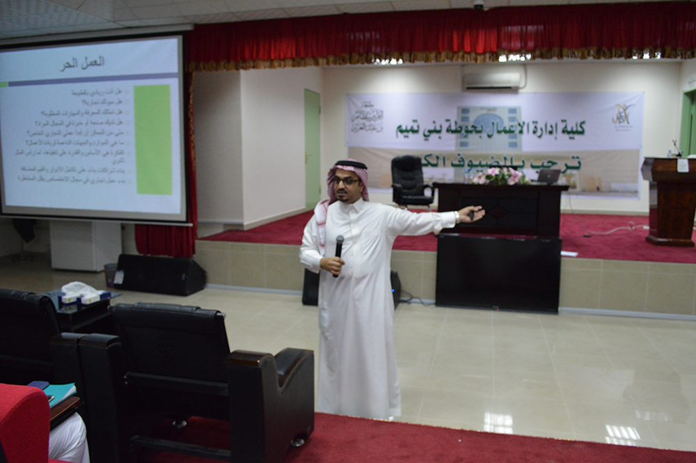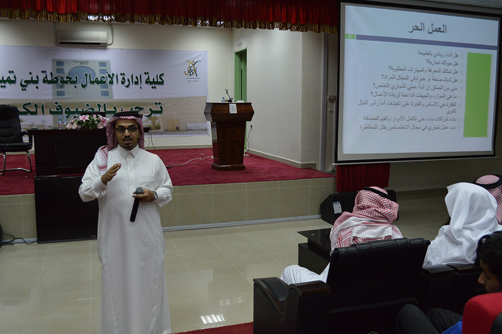 أقامت كلية إدارة الأعمال بحوطة بني تميم ممثلة بوحدة الخريجين محاضرة بعنوان: (حديث في الوظيفة) قدمها المهندس/ محمد بن علي السلاطين على مسرح الكلية، استهدفت الطلاب المتوقع تخرجهم في هذا العام الجامعي ١٤٣٧/١٤٣٦ .