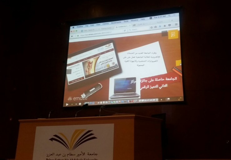 تلتها قصيدة ترحيبية من تقديم الطالبة أمجاد العتيبي. بعد ذلك قدمت د/ تهاني الدسيماني- أستاذ مساعد تقنيات التعليم- نبذة عن المهارات الالكترونية للطالبة, وضحت فيها الخدمات الالكترونية التي تقدمها الجامعة للطلاب والطالبات كالبريد الالكتروني و بوابة التعلم الالكتروني و التعلم عبر الانترنت (البلاك بورد) ، ثم تلا ذلك تعريف بالأقسام الأكاديمية (الرؤية- الرسالة - الأهداف -الخطط الدراسية- التعريف بالهيكل الإداري- و أعضاء هيئة التدريس) .