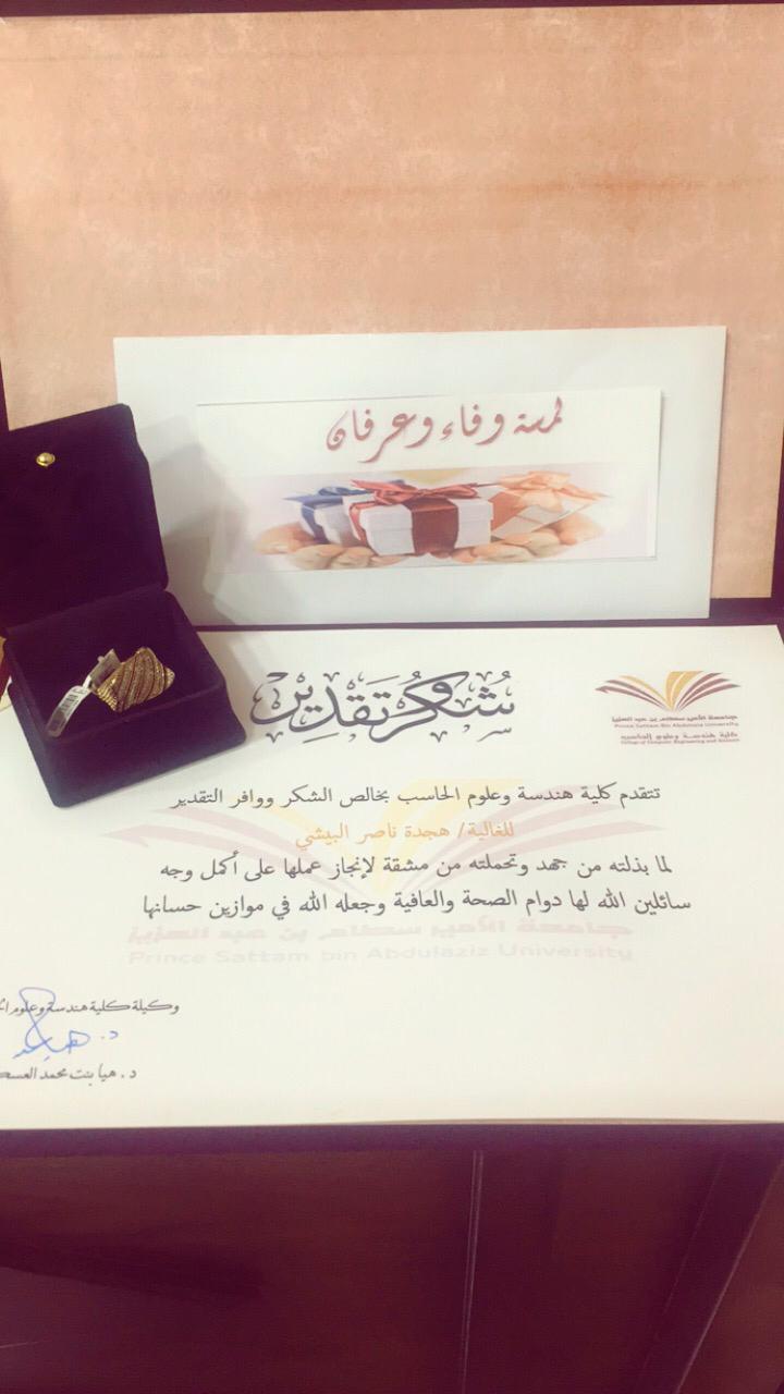 قدمت مشرفة وحدة العمل الطلابي بالكلية أ. ومضة عبد الرحمن كلمة شكر لهن ثم قدمت وكيلة الكلية كلمة شكر و عرفان لما قدموه للكلية من عمل .. كما تم تكريمهن بهدايا تعبيرا لهن لما يقمن به من جهد وتفاني في العمل .. فلهن الشكر و العرفان على جهدهن وجزاهن عنا خير الجزاء