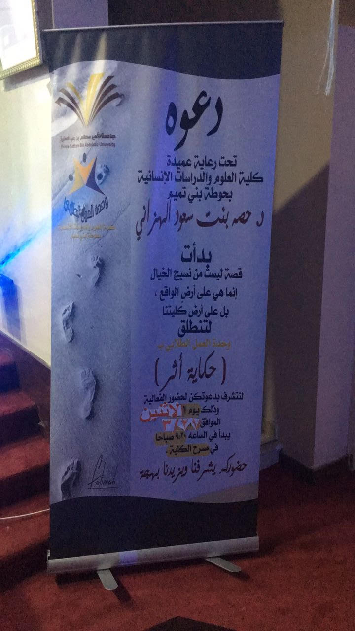 أقامت وحدة العمل الطلابي بكلية العلوم والدراسات الإنسانية بحوطة بني تميم حفلًا بعنوان (حكاية أثر) يهدف إلى تسليط الضوء على الأنشطة التي تم تنفيذها خلال الفصل الدراسي الحالي وذلك يوم الإثنين الموافق ٢٧ /٣ /١٤٣٨هـ بمسرح الكلية في تمام الساعة التاسعة والنصف صباحًا، فكانت البداية بقطار المفاجئات حيث بدأ الحفل الكريم بالسلام الملكي السعودي تلا ذلك آيات من الذكر الحكيم، بعد ذلك قامت الطالبات من مختلف نوادي الكلية بعروضهن والحديث عن أنديتهن وماتتضمنه من أهداف وأنشطة انطلاقًا من نادي الإبداع، فنادي اللغة الإنجليزية ونادي تقنية المعلومات وحتى نادي العمل التطوعي بعد ذلك ألقت مشرفة وحدة العمل الطلابي كلمتها أ. إسلام العمري ثم عرض مونتاج حكاية أثر لاستعراض أهم الأنشطة المقامة خلال الفصل الدراسي الأول، تلا ذلك كلمة لعميدة الكلية د. حصة الهزاني قدمت من خلالها شكرها لوكيلة الخدمة المجتمعية والتعليم المستمر د. نوف التميمي على حضورها ومشاركتها للكلية في الوقوف على هذا الأثر، كما قدمت شكرها للحاضرات من إدارة التعليم بالحوطة أ. زكية العجلان مديرة التخطيط والتطوير و أ. مها المرضي رئيسة النشاط الطلابي و أ. شيخة الحبر مشرفة التخطيط والتطوير و أ. وفاء السعيد مشرفة النظام الفصلي على حضورهن وإلى كل من ساهم في إنجاح برنامج حكاية أثر، بعدها تقدمت د. نوف التميمي بإلقاء كلمتها عبرت من خلالها عن سعادتها بتواجدها ومدى التطور الذي وصلت له الكلية، ثم جاءت لحظة الصمت لحظة الوفاء والتكريم ابتدأت بتقديم المباركة والتكريم لعميدة الكلية د. حصة الهزاني بمناسبة تعيينها عميدة لكلية العلوم والدراسات الإنسانية بحوطة بني تميم من قبل وكيلات الكلية د. نحمده جلال فوزي وكيلة الكلية للشؤون التعليمية والأكاديمية و أ. تهاني الجويعد وكيلة الكلية للشؤون الإدارية والمالية و أ. فاطمة الكليب وكيلة الكلية للتطوير والجودة ألقتها بالنيابة عنهن أ. منال الدحيم مساعدة مشرفة وحدة العمل الطلابي، كما تم تكريم الوكيلات بالكلية، بعد ذلك تم تكريم الطالبات المشاركات في الأنشطة الطلابية وطالبات المجلس الطلابي بشكل خاص بشهادات تقديرية وجوائز قيمة لعطائهن الفعال ومشرفات الأنشطة ومشرفات الأندية والمتعاونات، كما قدمت عميدة الكلية الدكتورة حصة الهزاني للدكتورة نوف التميمي باقة ورد تعبيرًا عن شكرها لتشريفها للحفل. وأخيرًا تم التوقف عند آخر محطة ولكنها ليست النهاية بل هي البداية إلى نهاية أكمل وأجمل تصل من خلالها أنشطة الكلية إلى الأثر المنشود. وفي ختام الحفل توجه الجميع إلى المعرض المصاحب المقام بالكلية للإطلاع على أعمال الطالبات المميزة اليدوية ذات الحرفية العالية من لوحات فنية ورسومات وأعمال لإعادة التدوير بالإضافة إلى أركان لجميع الأندية والتي تكشف عن إبداع ومهارة .