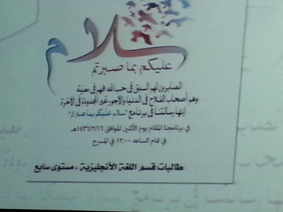 وفي الأخير دعت مشرفة وحدة العمل الطلابي لجلسة لم الشمل والتي أعدت بمشاركة وتعاون الجميع من منسوبات الكلية من أعضاء وموظفات وطالبات في جو يسوده المحبة والتعاون والإخاء .
