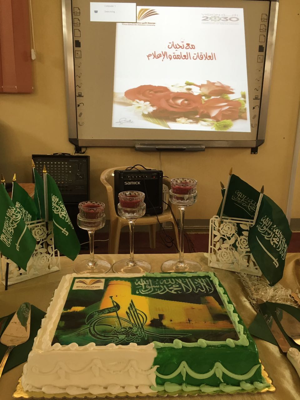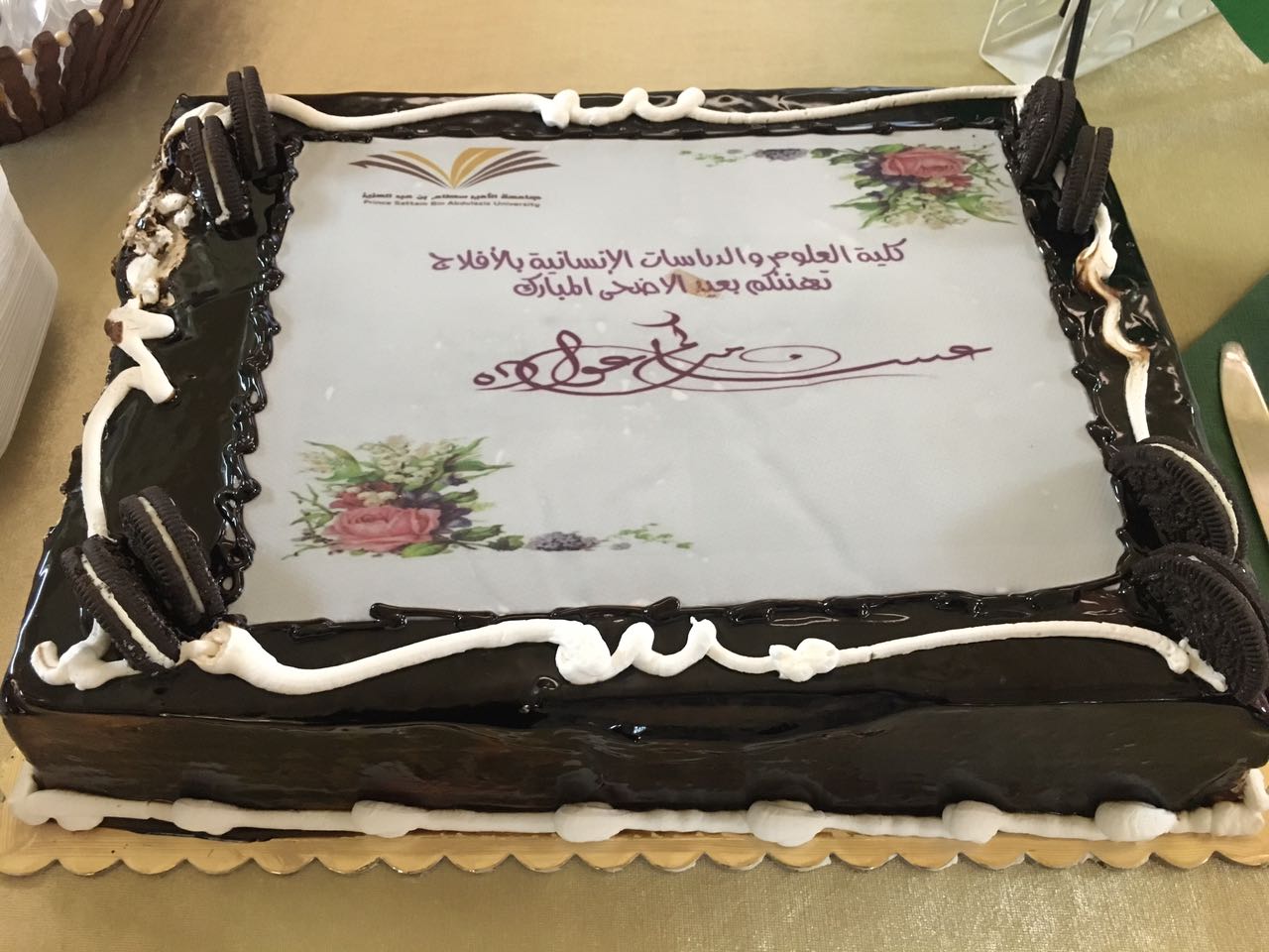 أقامت العلاقات العامة و الإعلام بكلية العلوم والدراسات الإنسانية بالأفلاج أمس الاثنين 1437/12/18 هـ بمصلى الكلية في تمام الساعة الحادية عشرة , حفل معايدة لجميع كوادر الجامعة من أساتذة و إداريات , بُدِء الحفل بمقدمة ترحيبية تحث على شحذ الهمم و السير نحو النجاح , بعدها كلمة مساعدة العميد د:وصال عز الدين ,حيث هنئت الجميع بهذه المناسبة و في الختام تمنت لهم عاماً دراسياً مكللاً بالنجاح , تلتها كلمة مديرة العلاقات العامة أ: منيرة الرشود , افتتحتها بالترحيب و التهنئة و التذكير بقرب مناسبة اخرى عزيزة على قلوبنا إلا و هي الاحتفال باليوم والوطني و في ختامها الحت على الله بالدعاء أن يحفظ بلادنا و يديم امننا وينصر جنودنا و يعز الإسلام والمسلمين , حضر الحفل مساعدة العميد و أعضاء هيئة التدريس و عدد من إداريات الجامعة , يهدف هذا الحفل إلى ربط أواصر هذا الصرح ببعضه و نشر الألفة و المحبه بينهم .