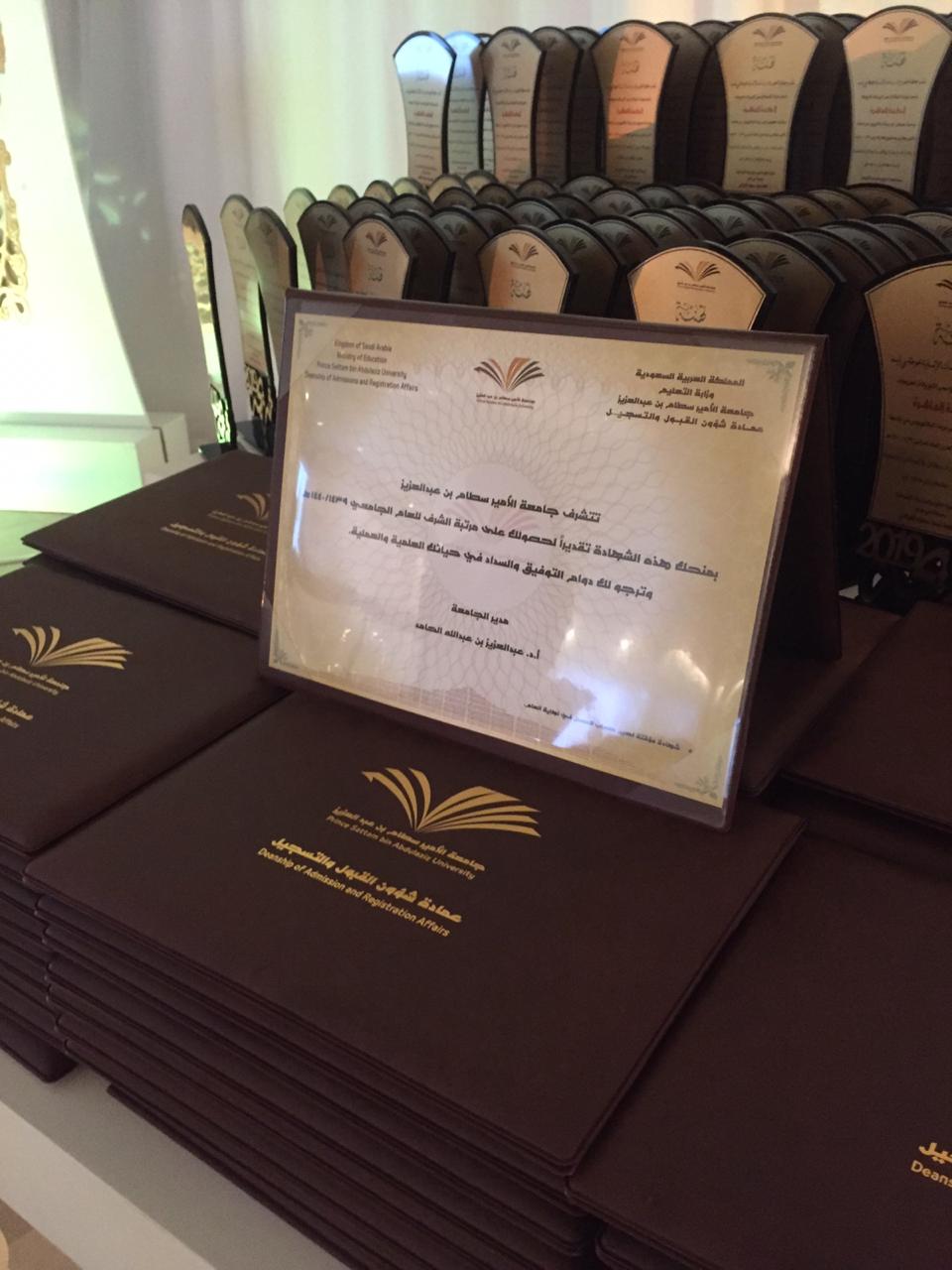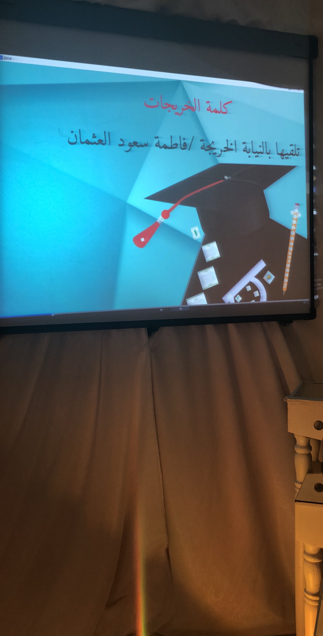ثم ألقت الطالبة فاطمة العثمان كلمة الخريجات، نيابة عنهن شكرت فيها الضيوف من قيادات الكلية على مشاركتهن الطالبات هذا الحفل وفرحة الإنجاز والتخرج، كما أشارت في كلمتها إلى ما حظيت به وزميلاتها الخريجات من رعاية واهتمام من قبل عميدة الكلية والادارة والطاقم التدريسي خلال المسيرة الدراسية. عقب ذلك عُرض فيلم وثائقي يحكي قصة الكلية وما أحرزته من انجازات، كما تم عرض قصة رحلة الدراسة للخريجات منذ بداية المراحل الدراسية وحتى يوم التتويج بالتخرج. وفي ختام فقرات الحفل كرمت سعادة عميدة الكلية الخريجات بدءاً بالطالبات الحاصلات على مراتب الشرف الأولى والثانية ثم جميع الخريجات. واختتم الحفل بدعوة الحاضرات بالتوجه للضيافة التي أْعدت لهذه المناسبة.