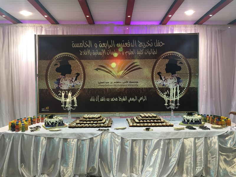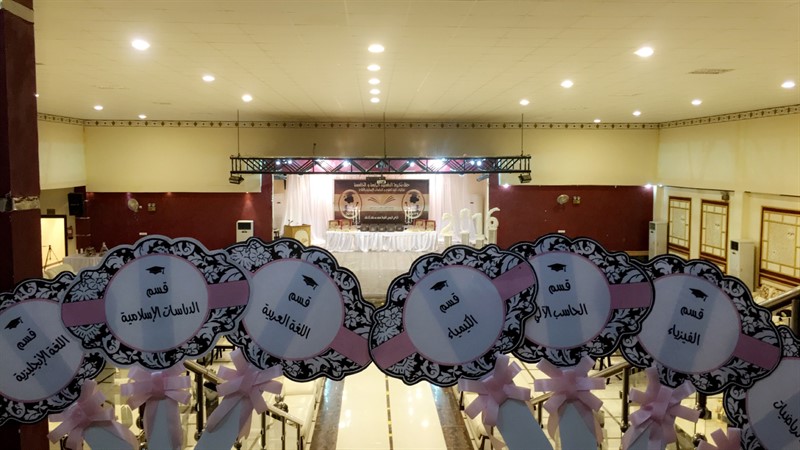 وقد أبدعت منسوبات العلاقات العامة ممثلة في الأستاذة منيرة الرشود ومساعدتها الأستاذة منيرة الخميسة واللجنه المنظمة في الاستعداد المبكر للحفل من حيث تنظيم القاعة وتجهيز الضيافة