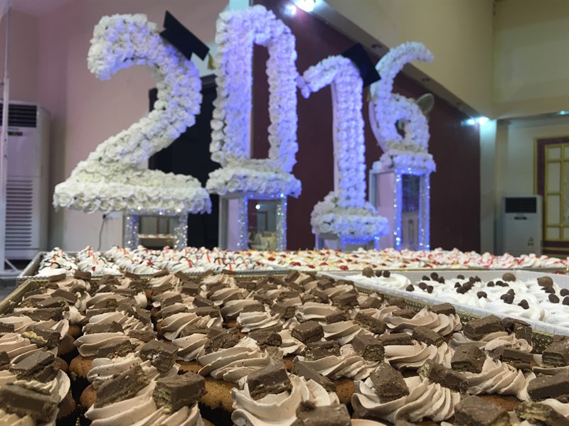 ثم خصص للإهداءات فقرة حيث كان ابرزها إهداء احدى الخريجات لوالدتها باقة ورد ثم انحنت على قدميها مقبلة اياها وسط صيحات امتزجت بالدموع