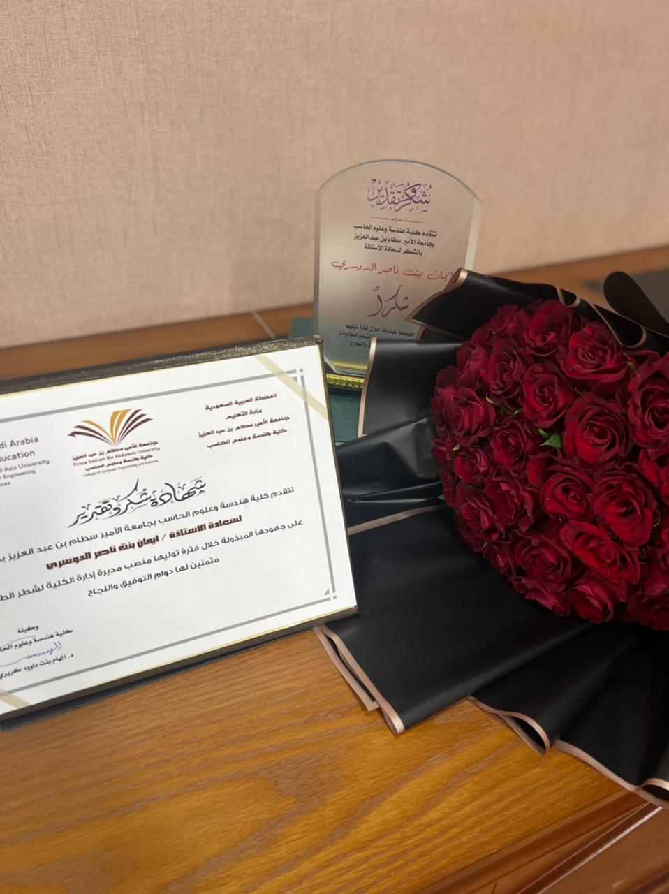 وتم اختتام التكريم بتسليم شهادات الشكر والتقدير للدكتورة هيا و الأستاذة ايمان .