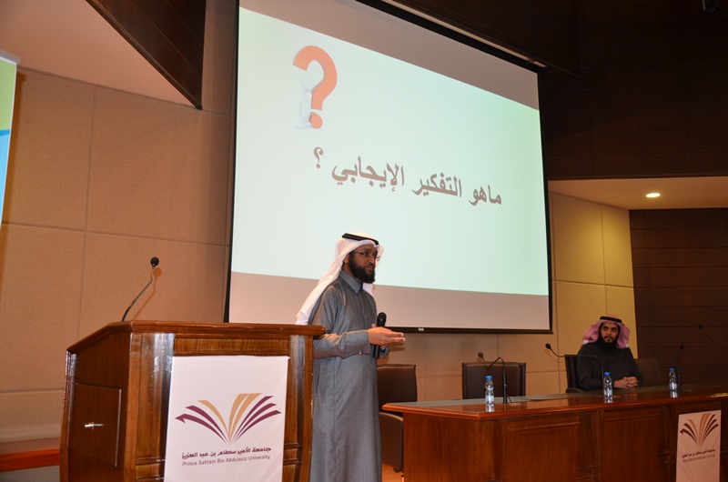 تحت رعاية معالي مدير الجامعة نظمت وحدة التوعية الفكرية ضمن مشروع ( نحو جامعة واعية -1- ) حلقة نقاش بعنوان ( التفكير الإيجابي ) قدمها الأستاذ/ جمال حمد الحمداء مساعد عميد شؤون الطلاب للأنشطة الطلابية.