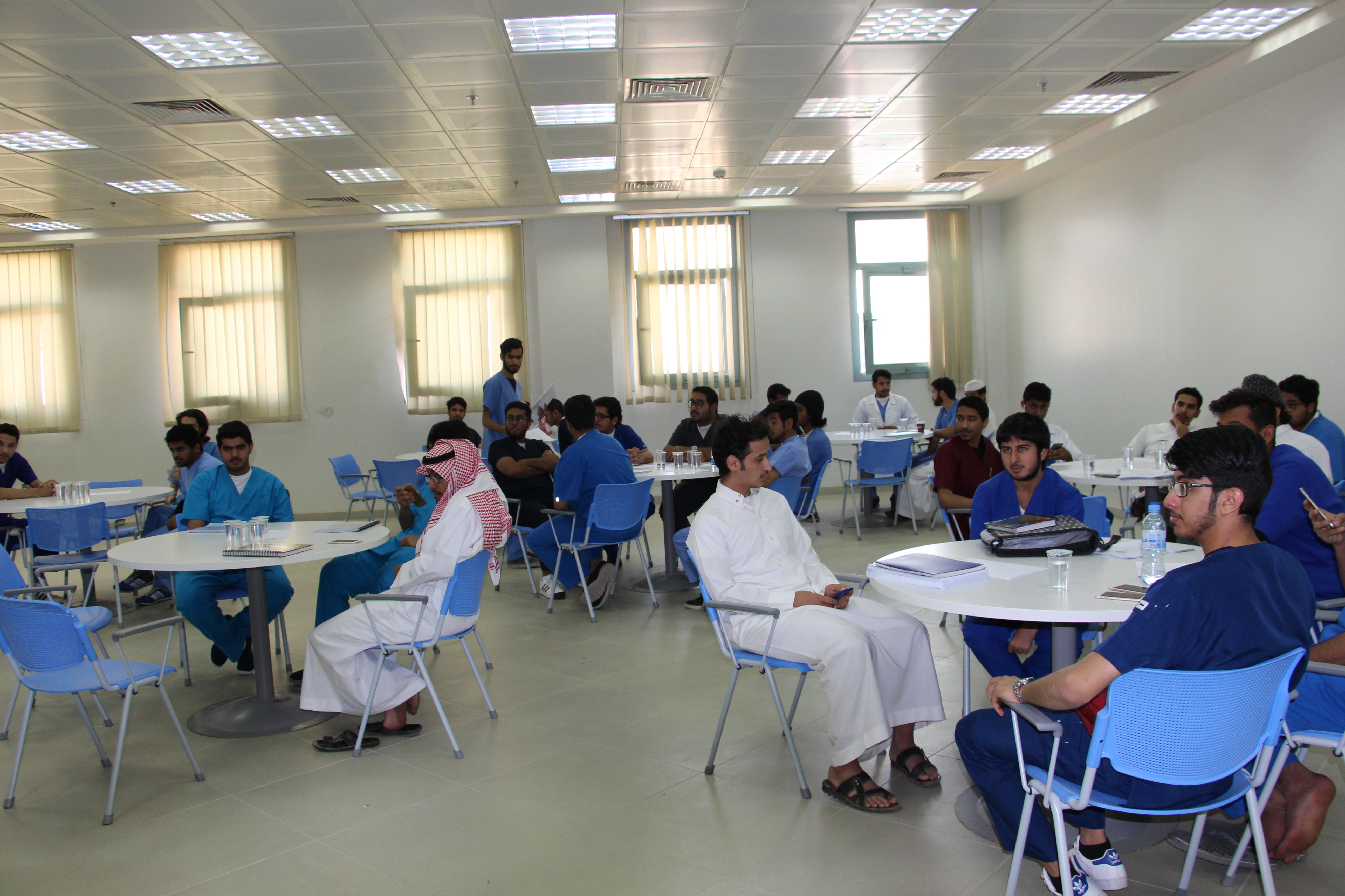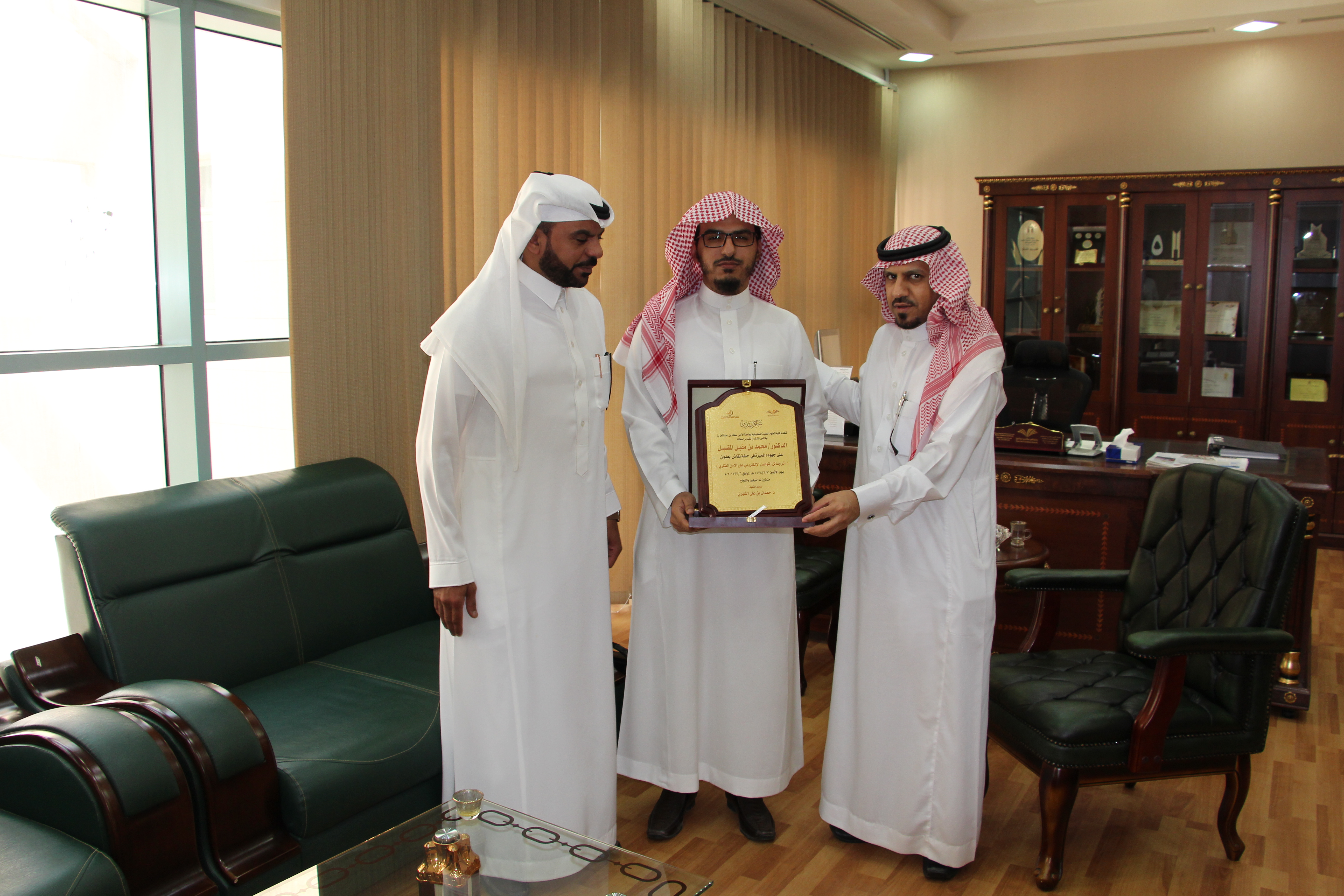 وقد تم تقسيم الطلبة المشاركين إلى مجموعات صغيرة، وتخللها الإجابة على أسئلتهم. وفي نهاية حلقة النقاش كرم سعادة عميد الكلية الدكتور/ حمدان الشهري سعادة الدكتور/ محمد المقبل متمنياً له دوام التوفيق وشاكراً ومقدراً مشاركته الفاعلة في انجاز مشروع " نحو جامعة واعية " والذي تشرف عليه وكالة الجامعة للشؤون التعليمية والأكاديمية.