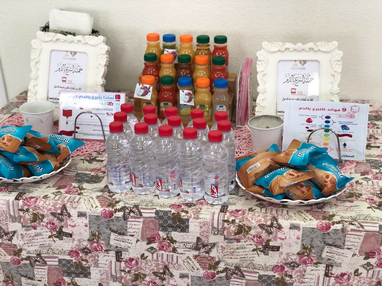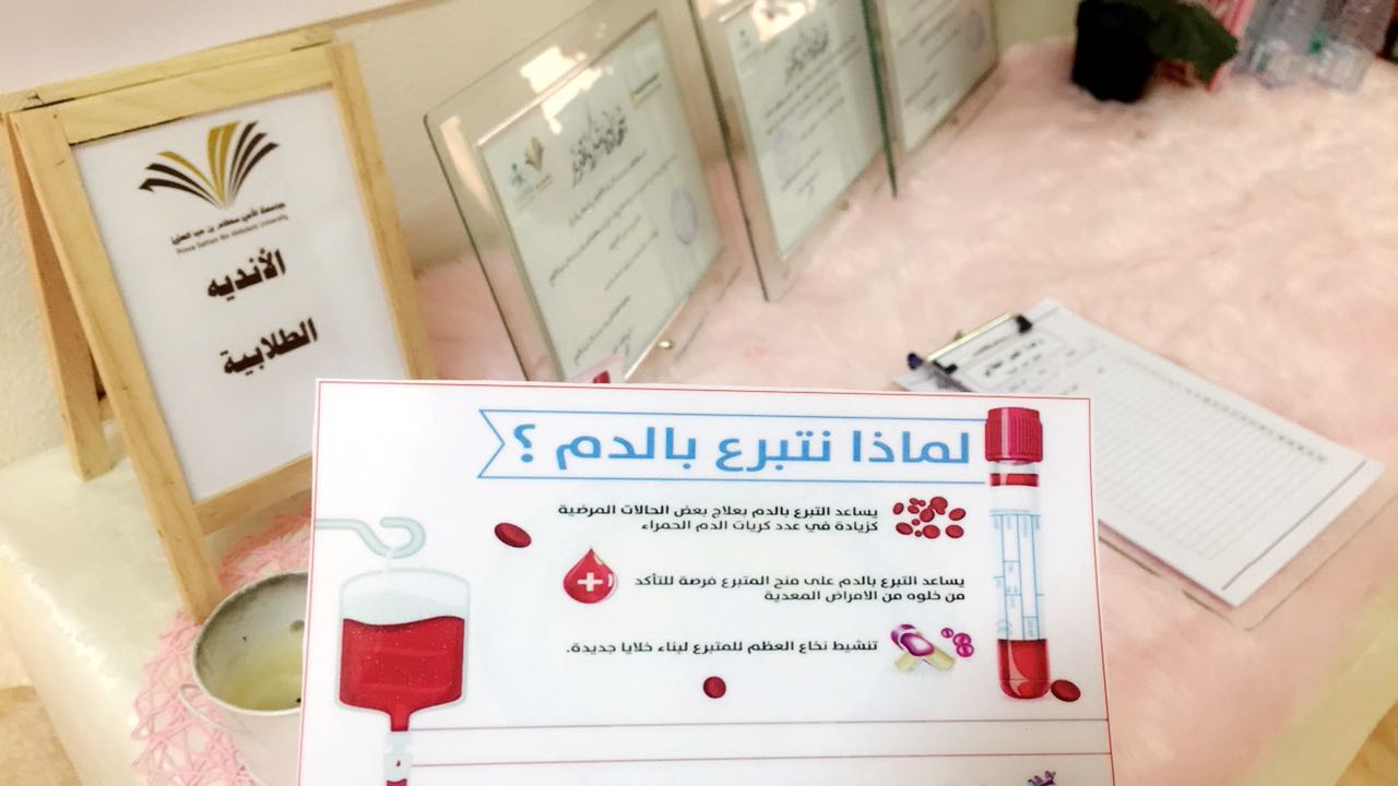حيث تم استقبال طاقم المستشفى في القسمين الأدبي والعلمي تم خلال ذلك اتخاذ اللازم من الاجراءات للراغبات في التبرع منها الكشف عن الحرارة والضغط وقياس الوزن والطول ونسبة الهيموجلوبين في الدم والتأكد من مناسبة المتبرعة من ذلك.