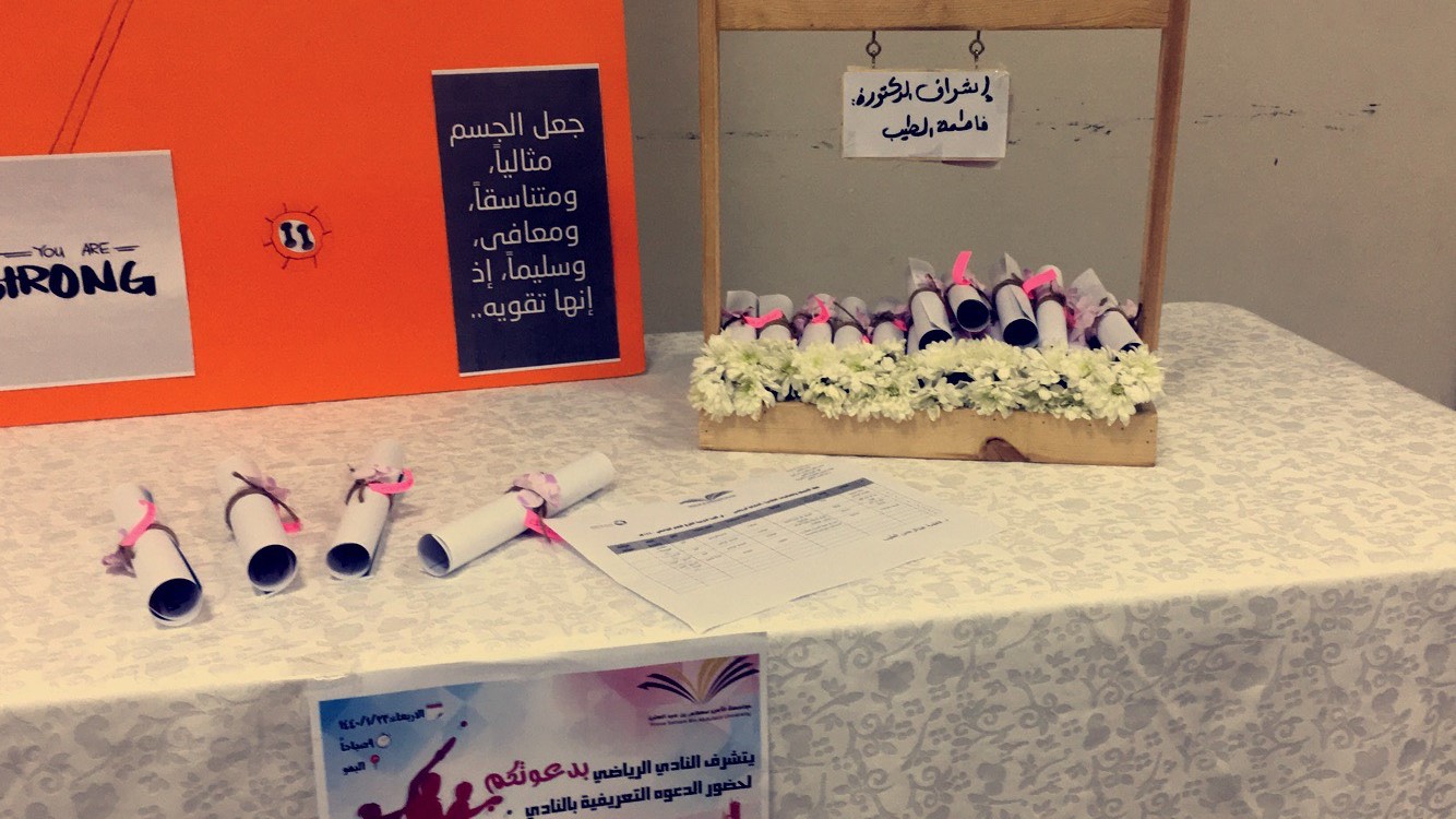 أطلقت وحدة العمل الطلابي بكلية التربية بالخرج بجامعة الأمير سطام بن عبدالعزيز الحملة التعريفية بالنشاط الرياضي وكان ذلك يوم الأربعاء الموافق 23-1-1440هـ, بقيادة د.فاطمة عبدالرحمن الطيب الأستاذ مساعد بقسم علم النفس بكلية التربية ,وهدفت الحملة لتعريف الطالبات بأهمية وأهداف النشاط الرياضي وتعريف الطالبات بالفعاليات الرياضية الطلابية .واستهدفت الحملة طالبات الكلية وبلغ عدد الحضور 30 طالبة.