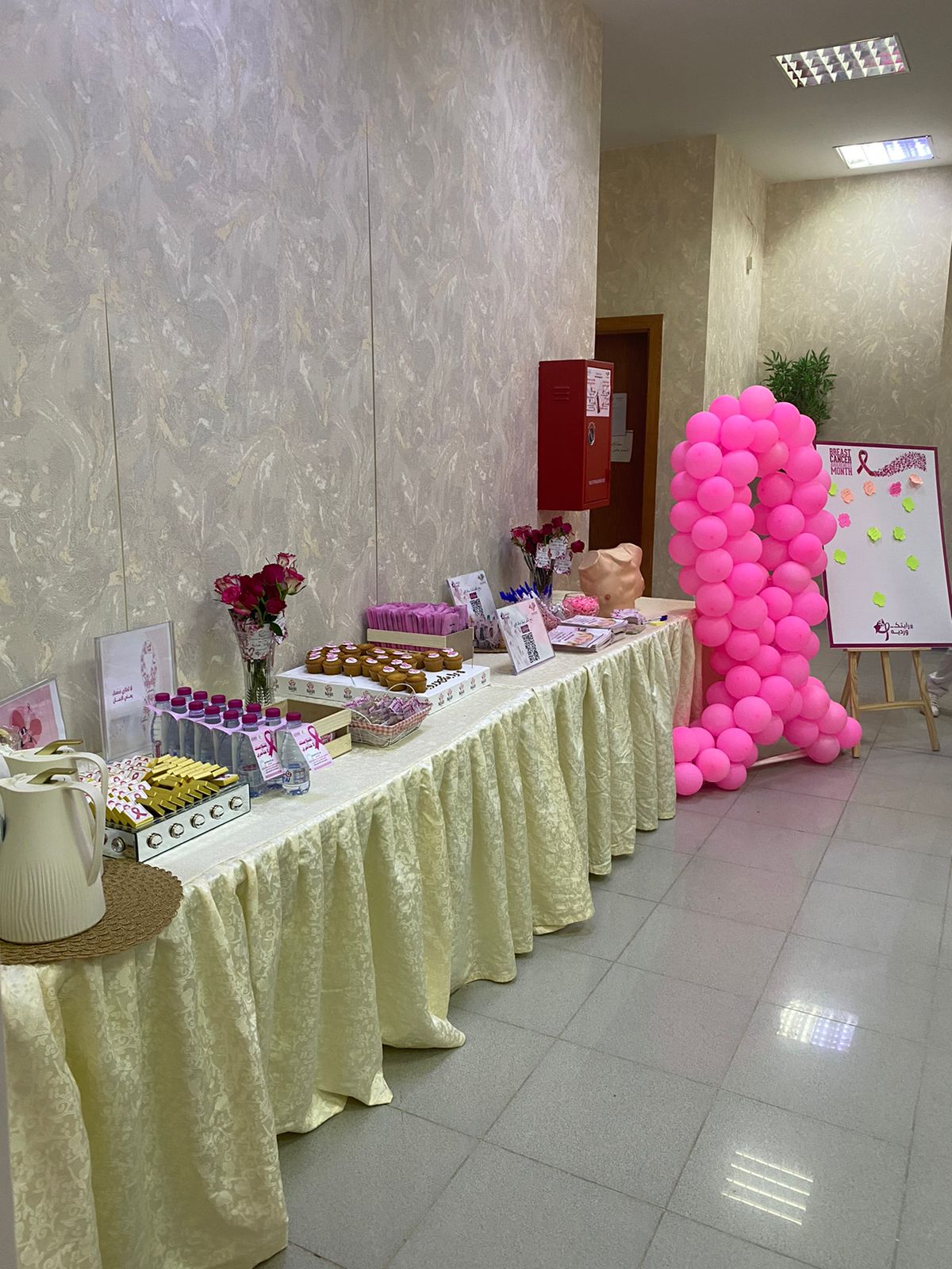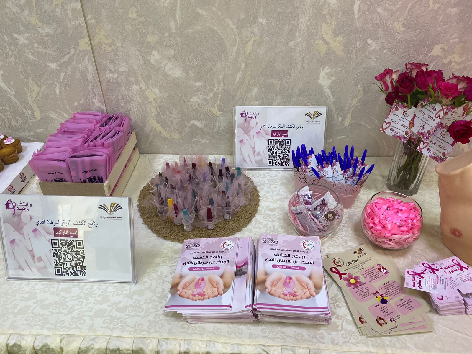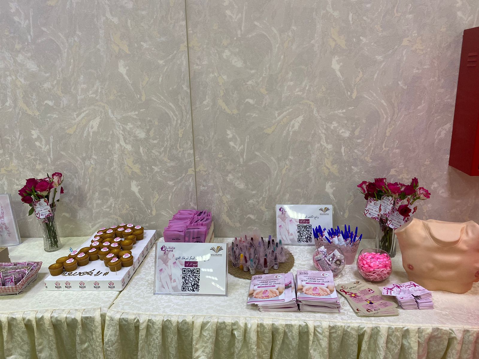 تزامناً مع شهر أكتوبر العالمي للتوعية بسرطان الثدي حسب منظمة الصحة العالمية" استضافت الكلية ممثلة بوحدة العلاقات العامة والإعلام يوم الأربعاء 1-4-1444هـ فريق من المستشفى الجامعي لتفعيل حملة التوعية بسرطان الثدي وبرنامج الكشف المبكر لسرطان الثدي,بإشراف الدكتورة/ رقية هاشم. والمنفذة في بهو الكلية وتهدف الحملة للتوعية بمرض سرطان الثدي,وأهمية الكشف المبكر وأكثر الفئات عرضة للإصابة,وأسباب الإصابة بسرطان الثدي وطرق الوقاية منه غذائياً.وأهمية إجراء الفحوصات المبكرة.وشرحت الدكتورة طريقة الفحص المنزلي الدوري ووضحت أهميته في الكشف المبكرتفادياً لأي خطورة .
