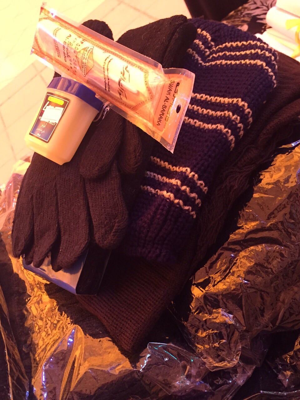 و انطلقت المرحلة الأولى للحملة يوم الاربعاء الماضي وقد تم في هذه المرحلة توزيع (60 ) كسوة شتوية على العمال في أماكن عدة في الخرج تحتوي كل كسوة على ( ألبسة شتوية - غطاء للأذنين - جوارب - قفاز -فازلين ) ولاقى هذا العمل ترحيب وشكر من العمال لأولياء أمور الطالبات الذين ساعدوا في التوزيع .