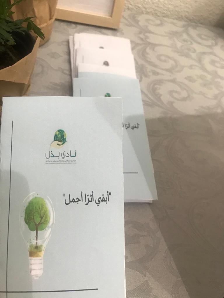 عقد نادي بذل التطوعي بكلية التربية بالخرج يوم الأحد الموافق ١٣-٧-١٤٤١هـ, حملة بعنوان (أبقي أثراً جميلاً).وكان من أهم أهدافها الحث على حماية البيئة والحفاظ عليها وذلك بغرس الشتلات وإحياء الزرع والمحافظة ع نظافتها والحفاظ على الممتلكات العامة في البيئة ,وتشغيل عرض فيديو يوضح دور الانسان في البيئة وكيف قام على تطويرها وتسخيرها له والاستفادة من الخامات الموجودة في البيئة ويظهر ذلك في المقارنة بين الانسان في العصر الحجري وفي عصرنا هذا . والإستشهاد بحديث الرسول صلى الله علية وسلم ( لاضرر ولا ضرار ) في وجوب نظافة البيئة والمحافظة عليها وإبقاء المكان أجمل مما كان .وقد قام فريق نادي بذل التطوعي بتوزيع شتلات زراعية للحث على تشجير وتجميل البيئة.
