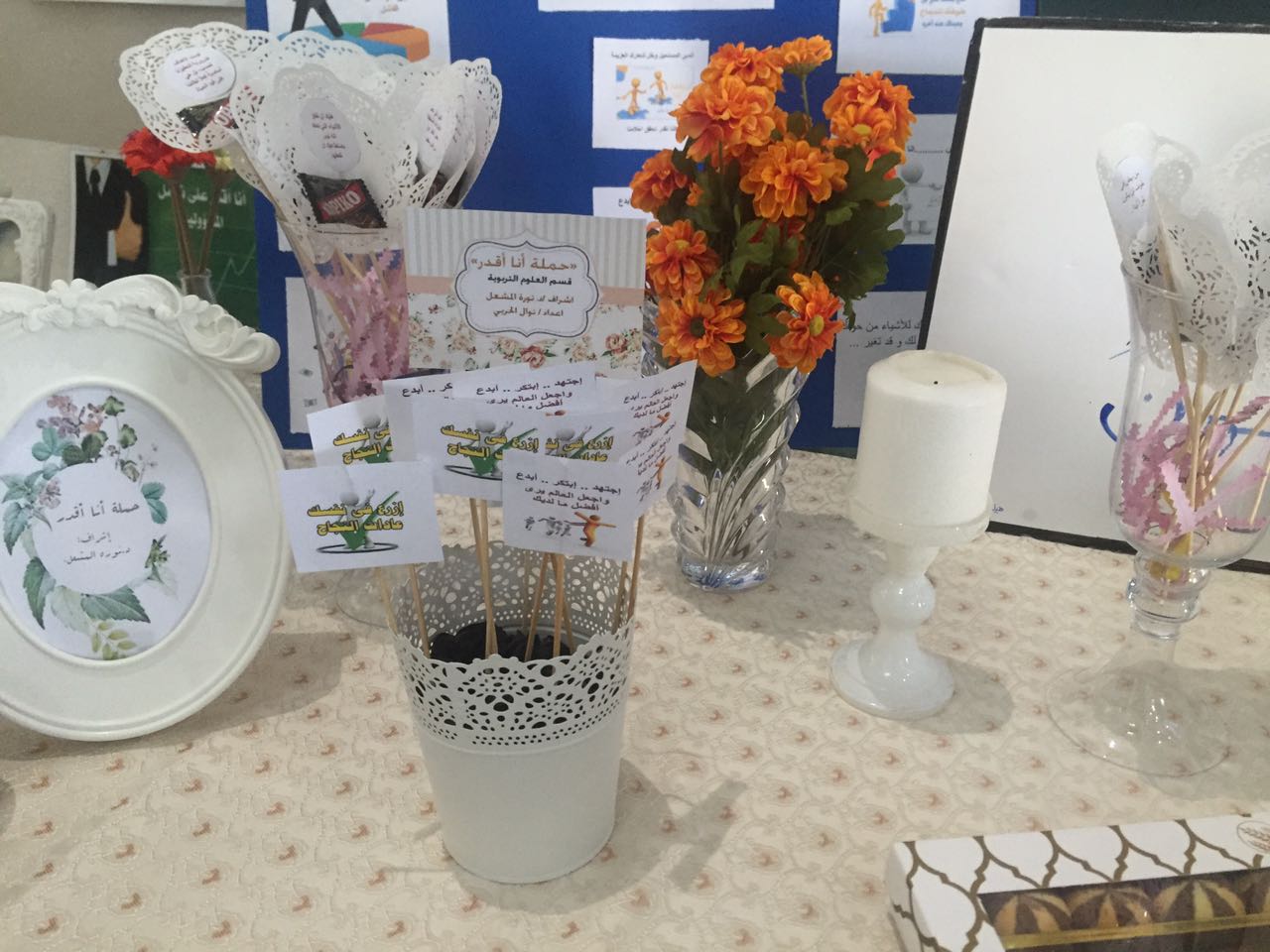 أقام قسم العلوم التربوية بكلية التربية بالخرج حملة تحت عنوان (أانا أقدر) وذلك يوم الثلاثاء الموافق 14/3/1438هـ والتي نظمها عدد من طالبات كلا من المستوى السابع لقسم التربية الخاصة وقسم الدراسات الاسلامية تحت إشراف د.نورة المشعل ود.أريج التويجري .وقد هدفت الحملة إلى تنمية القدرة على الاصرار والتقدم وتنمية مهارات تجديد الأولويات والأهداف .ايضاً مساعدة الطالبات على اكتشاف مهارات وقدرات كامنة لديهن .كما حرصت الحملة على حث الطالبات لتجريب الوصول للأهداف وسبل تحقيقها .وتم عرض بعض النماذج على الإصرار والإقدام لإثارة دافعية الطالبات .وتم تخصيص ركن عرض فيه أعمال الطالبات والتي لاقت استحسانًا كبيرًا من قبل الطالبات ومجتمع الكلية .