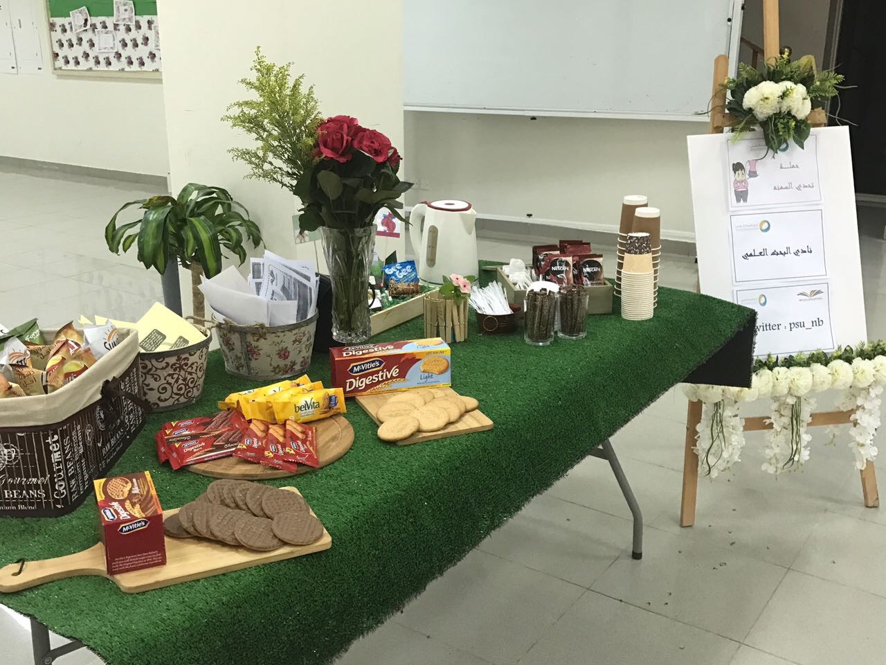 اقام نادي البحث العلمي حملة بعنوان (تحدي السمنة) بإشراف الأستاذة /مدى محمد الهذيلي ومشاركة الطالبات أعضاء النادي في بهو مبنى ب وقدهدفت هذة الحملة لتعريف الطالبات بأضرارومخاطرالسمنة وزيادة الوزن وخفض معدلات السمنة لدى الطالبات وتحسين النظام الغذائي وتضم مجموعة من المشاركين لإنقاص وزنهم وتشجيعهم على ذلك وأحصائيات علمية عن زيادة الوزن ونسبة السكريات في الحلويات .