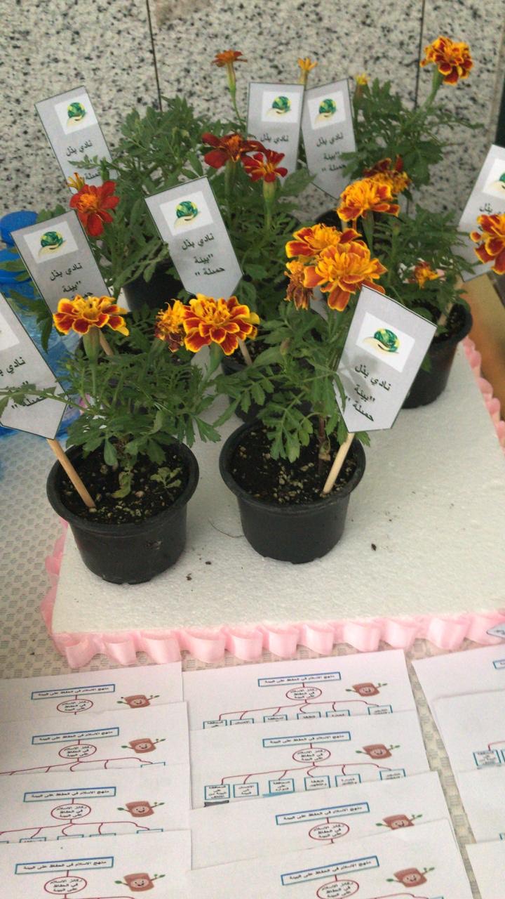 وكان من أهم أهداف الحملة توعية الطالبات بأهمية البيئة والحفاظ عليها , وقد قام النادي بتوزيع نباتات الزينة على الطالبات والموظفات مما زاد من جمال المكان.