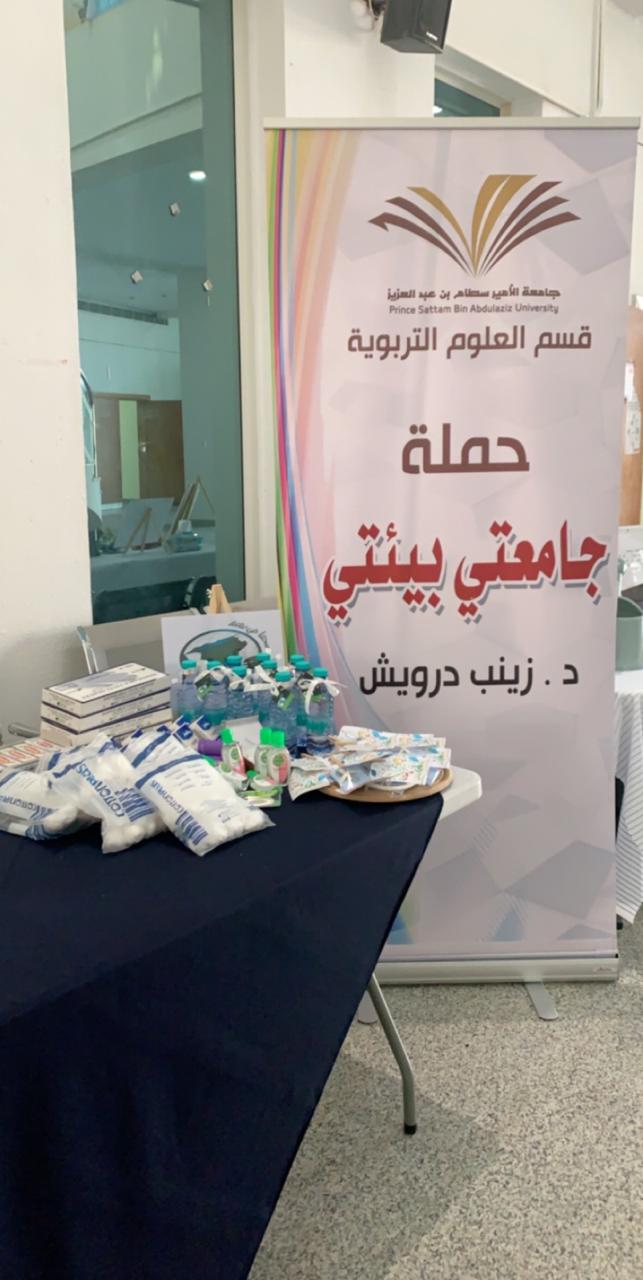 أقام قسم العلوم التربوية بالتعاون مع وحدة العمل الطلابي حملة (جامعتي بيئتي) في بهو الكلية يوم الأربعاء 23-3-1441هـ, للدكتورة .زينب عواد مفلح درويش أستاذ الإدارة والتخطيط المشارك بكلية التربية بالخرج.