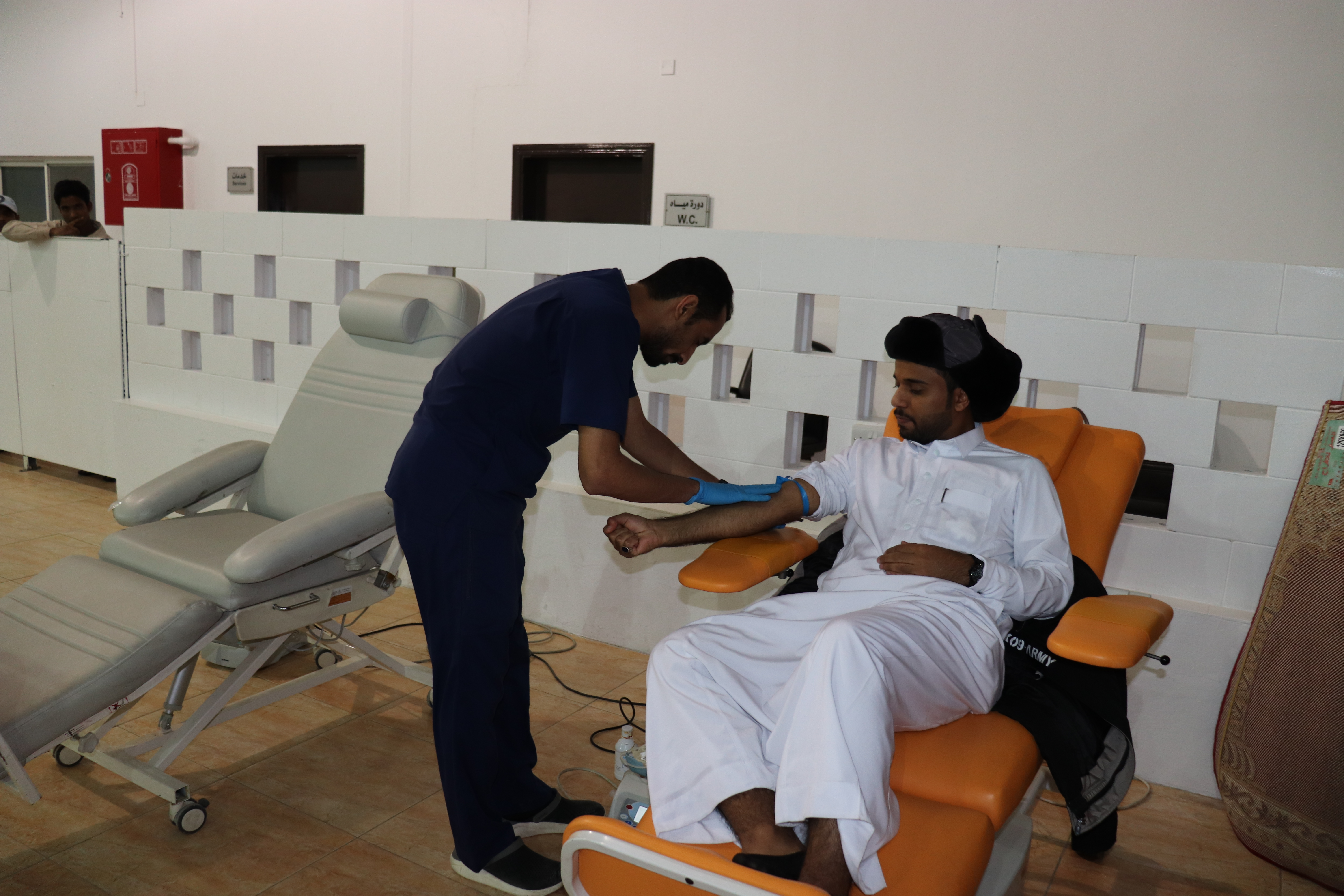 ومن ناحية أخرى أكد الفريق الطبي على هناك شروط حددتها منظمة الصحة العالمية للتبرع بالدم منها أن يتجاوز المتبرع السن القانونية، وان يتعدى وزنه (60) كيلو غرامًا، كما أن يجب أن يكون خاليًا من الأمراض، وألا يتناول أى أدوية، ولم يسافر لأي بلد ينتشر فيها الأوبيئة، وألا يعاني من فقر الدم وبالإضافة إلى ذلك أشار الفريق الطبي إلى اهم الحالات التي يمنع فيها التبرع بالدم ومن أهمها الشخص الذي قام بإجراء عملية جراحية أو عملية نقل الدم والتبرع به خلال فترة أقل من (12) شهر، والشخص المصاب بالأمراض المعدية والتي ثبت أنها تنتقل من خلال عملية نقل الدم ومن هذه الأمراض التهاب الكبد الفيروسي والملاريا والإيدز وغيرها.بالإضافة إلى الشخص المصاب بفقر الدم، وأمراض الحساسية المختلفة مثل الربو، وكذلك الحساسية من الأدوية.