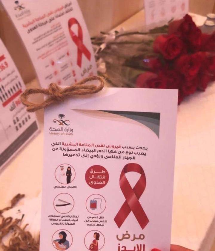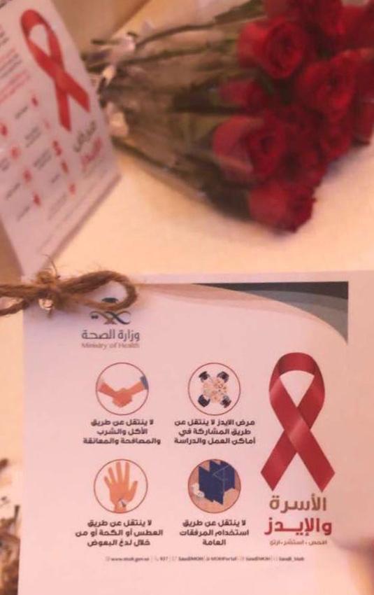 كما تم عرض فيديو يوضح أهمية الفحص المبكر لمرض الإيدز و كذلك توزيع نشرات للتوعية بهذا المرض .