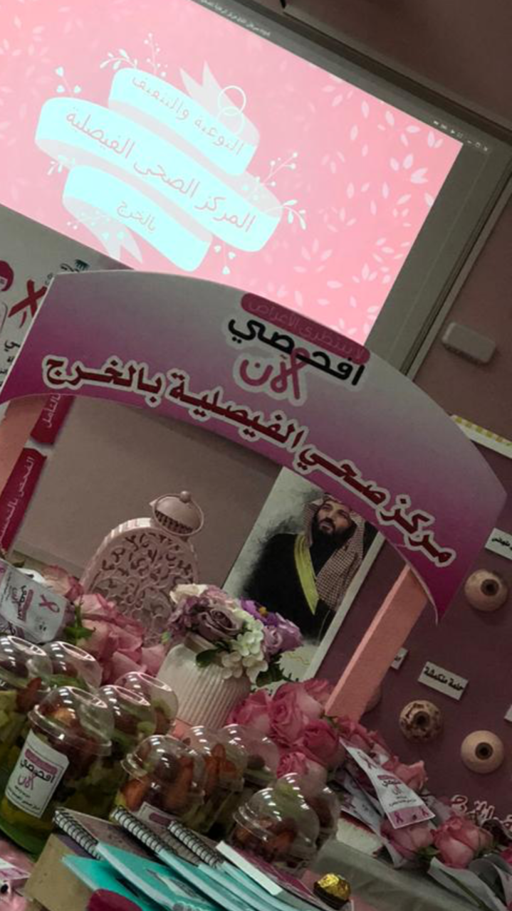 بإشراف مباشر من سعادة وكيلة كلية المجتمع بالخرج الدكتورة/ أمينة بنت عبدالرحمن المشحن، أقامت وحدة العمل الطلابي ممثلة بقسم الأنشطة الاجتماعية والثقافية وبالتعاون مع جمعية زهرة ومركز صحي حي الفيصلية حملة تثقيفية صحية عن سرطان الثدي بعنوان "لا تنتظري الأعراض افحصي الآن"؛ وذلك يوم الثلاثاء الموافق ٩/ ٢/ ١٤٤١هـ في قاعة الأنشطة الطلابية بالكلية.