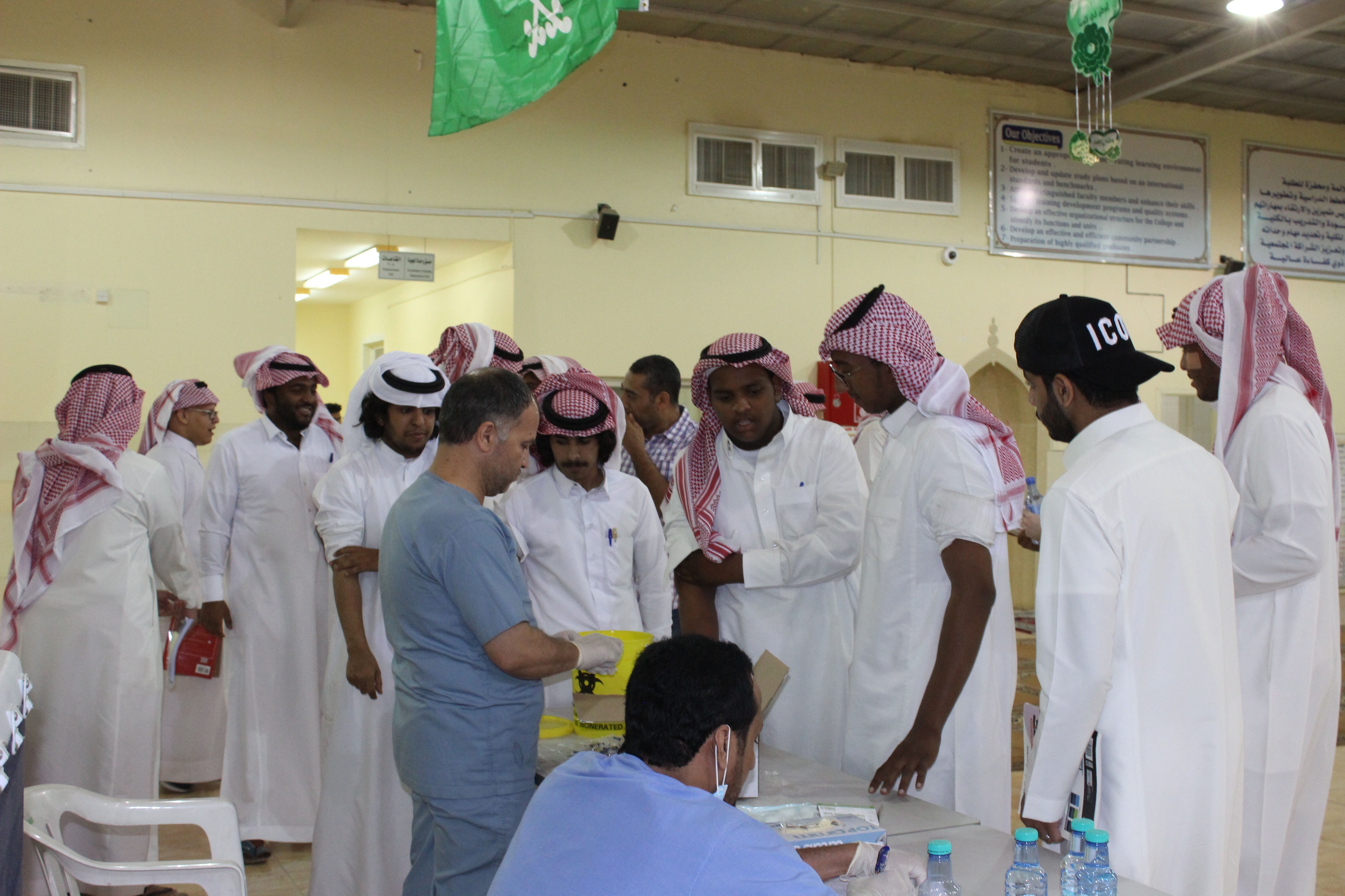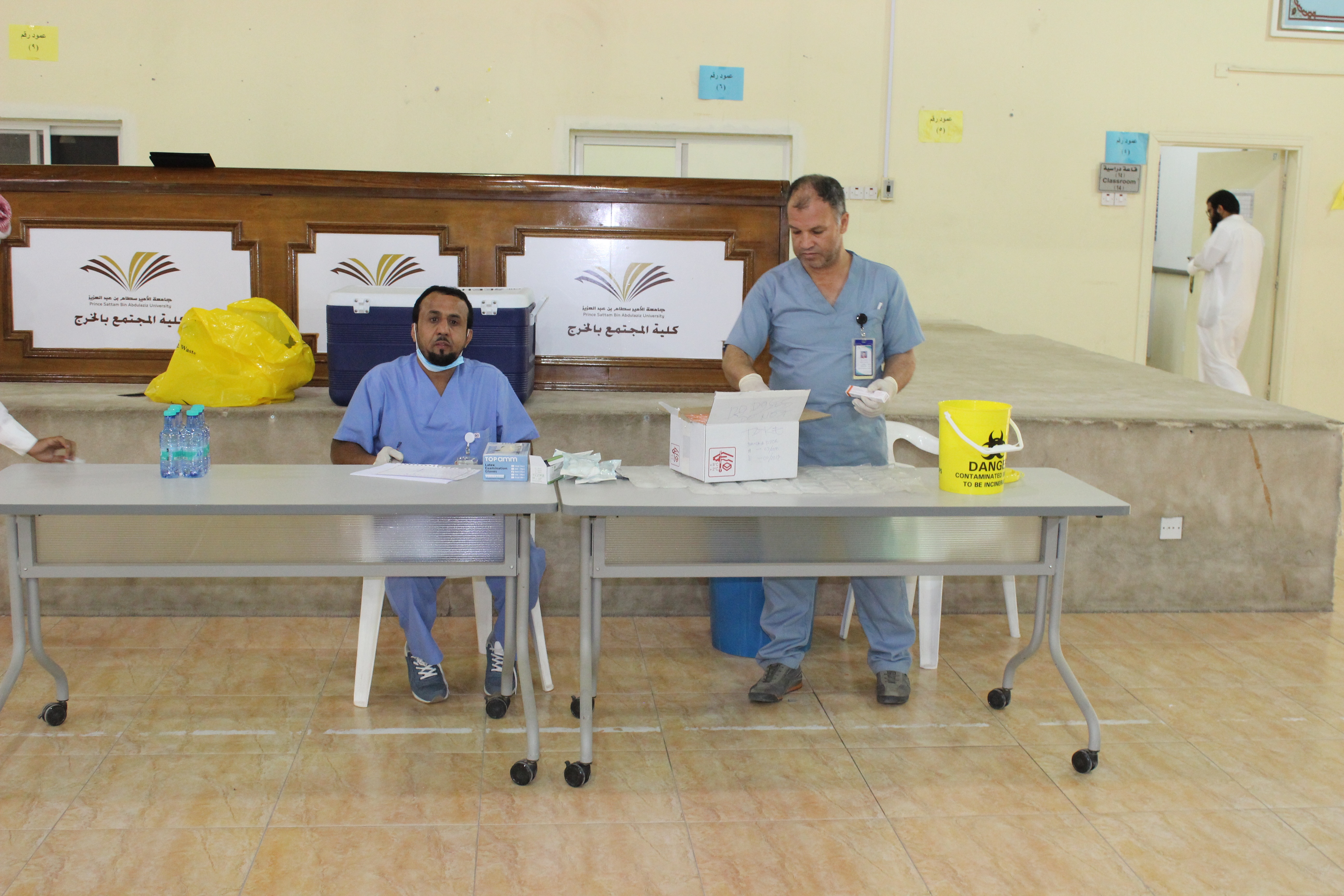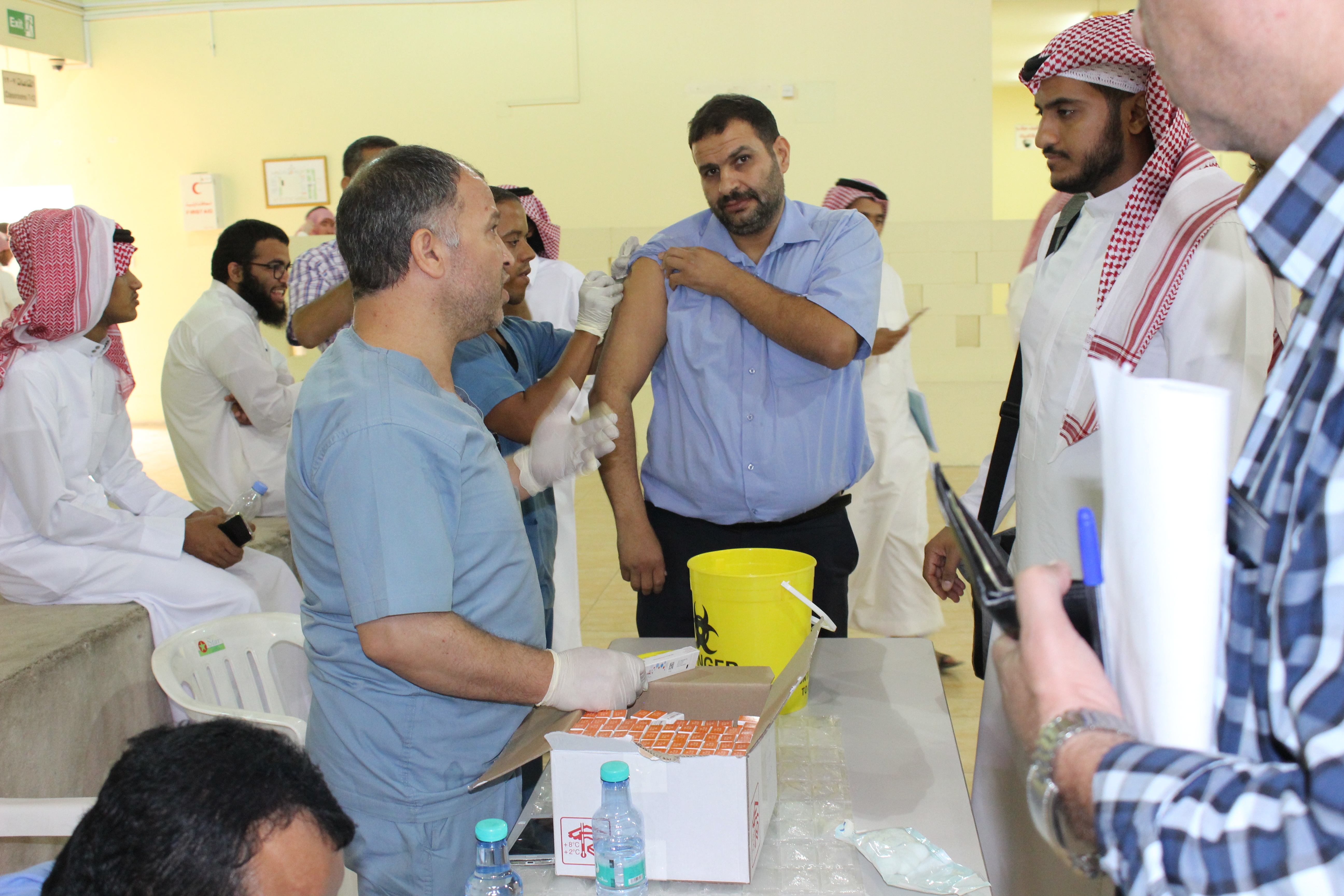 نظمت وحدة العلاقات العامة والاعلام بكلية المجتمع بالخرج حملة للتطعيم ضد الأنفلونزا الموسمية بالتعاون مع مستوصف صحي السيح بالخرج وذلك يوم الاربعاء الموافق 15/2/1440هـ وقد تم تطعيم أكثر من (100) طالب في المستويات المختلفة بالكلية، وكذلك تطعيم منسوبي الكلية من أعضاء هيئة التدريس والموظفين ورجال الامن ، وقد أشاد سعادة الأستاذ الدكتور/ سعيد بن نزال العنزي عميد الكلية بجهود مستوصف صحي السيح بالخرج في نشر الوعي الصحى بين طوائف المجتمع المختلفة وأكد سعادته على أهمية التعاون مع المستوصف في تنظيم حملات توعوية مختلفة مثل مكافحة التدخين، والمخدرات وغيرها من القضايا التى تهدد حياة الطلاب