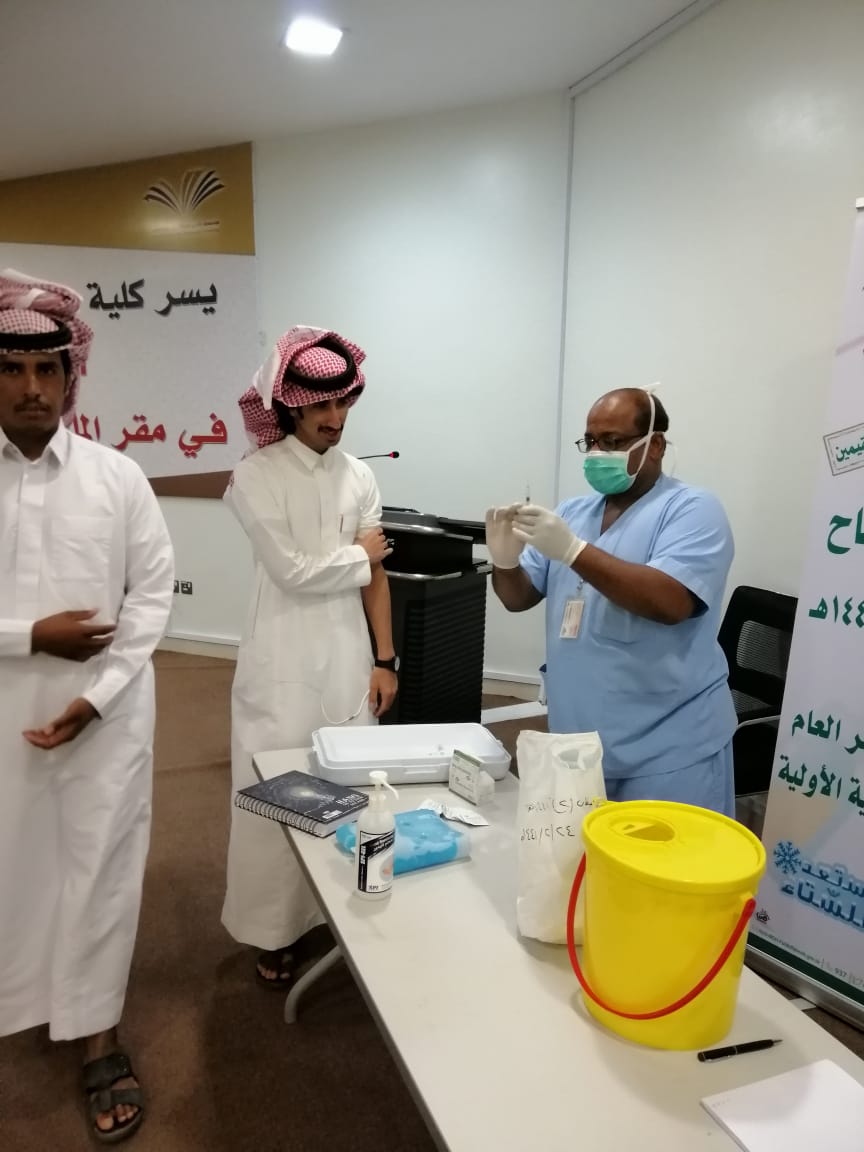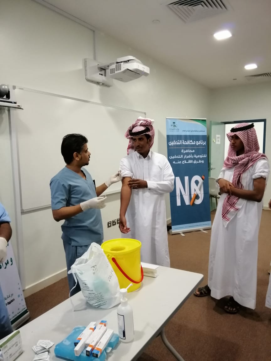 نظمت كلية الآداب والعلوم بمحافظة وادي الدواسر بالتعاون مع المستشفى العام بالمحافظة يوم امس الأربعاء الموافق 1441/3/16هـ ، حملة تطعيم ضد الإنفلونزا الموسمية وركن لعيادة مكافحة التدخين، استفاد منها أكثر من 80 فرداً من طلاب ومنسوبين ، بحضور عميد الكلية الدكتور عمر بن نوح المطيري ، وعدد من اعضاء هيئة التدريس والموظفين والطلاب .
