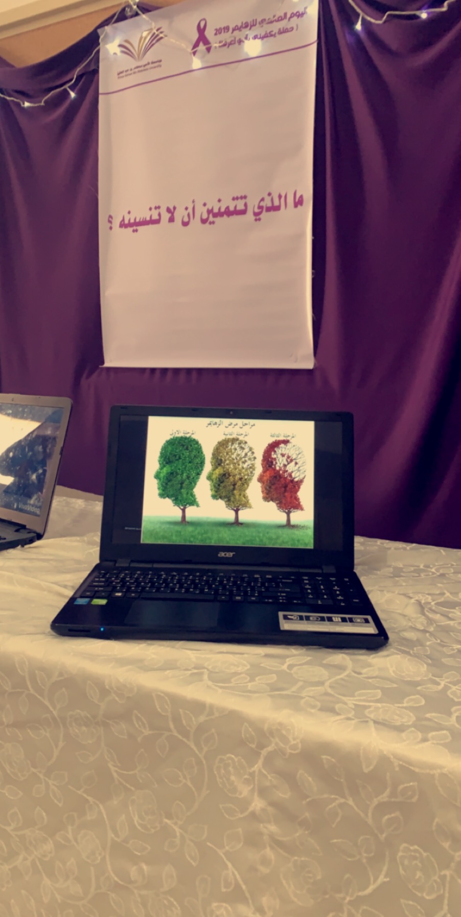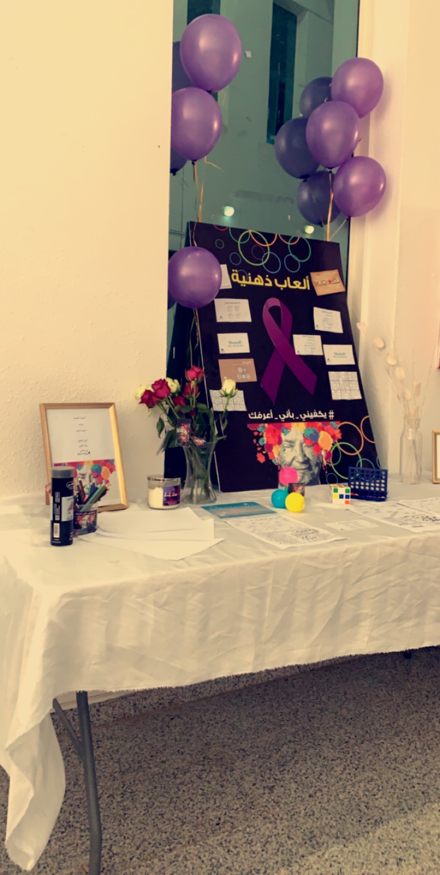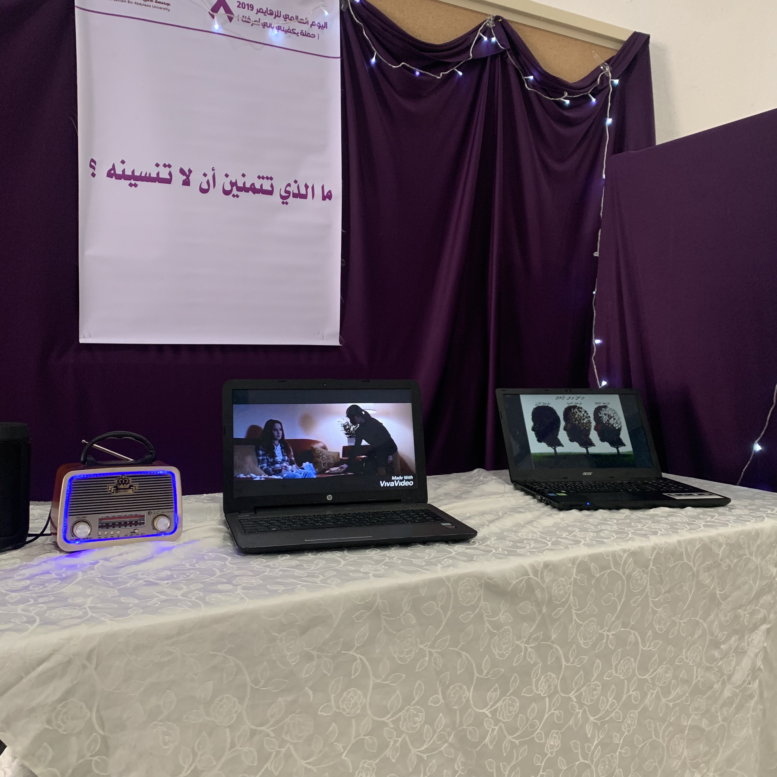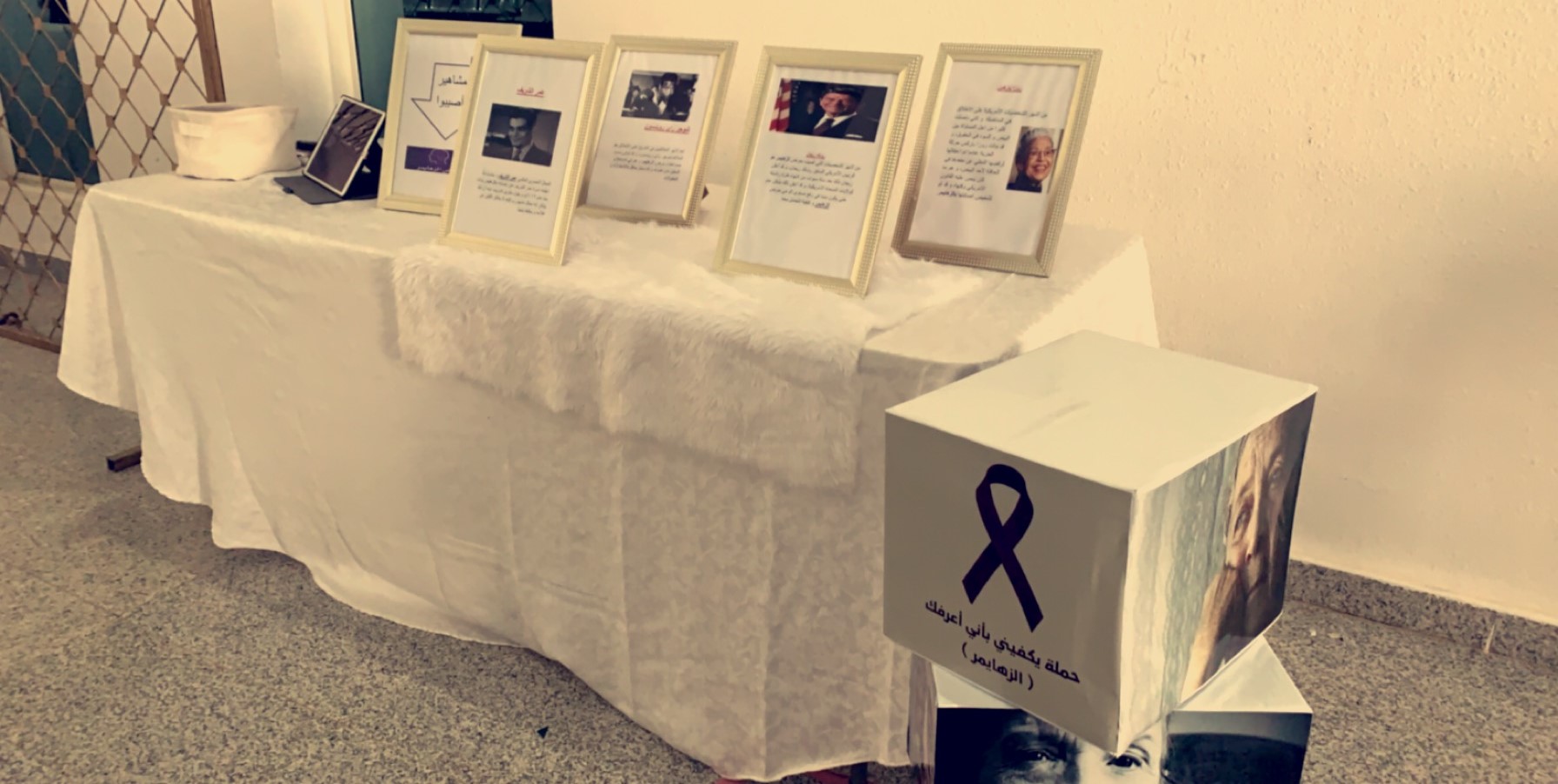 أقامت وحدة العمل الطلابي بالتعاون مع قسم التربية الخاصة حملة يكفيني بأني أعرفك لتفعيل اليوم العالمي لمرضى الزهايمرتحت إشراف أ. بشرى العنزي, يوم الأثنين الموافق الموافق 17-1-1441هـ,ببهو الكلية.والتي تهدف لتعزيز ورفع الوعي الصحي حول مرض الزهايمر,وتعريف المجتمع بمرض الزهايمرو لتفعيل الدور التوعوي والثقافي لدى فئات المجتمع الطلابي المختلف, الدعم النفسي والاجتماعي لمن لديهم أشخاص مصابين بمرض الزهايمر والتوعية بأعراض مرض الزهايمر ونمط حياتهم وبرامجهم كالألعاب التي قد تنشط الدماغ . واحتوى المعرض المصاحب للحملة على صور لمشاهير أصيبوا بمرض الزهايمر مع قصة بسيطة عن حياتهم ,( قفص وأقفال) لكتابة كلمة لمرضى الزهايمر ,وركن كيف يروننا ويتضمن العديد من الصور المبهمة والمشوشة وزجاج مشوش للتجربة ,وركن ألعاب تنشيط الذاكرة لمرضى الزهايمر وركن مقاطع فيديو لمرضى الزهايمر يتضمن الأعراض و نمط حياتهم وسلوكياتهم.واستهدفت الحملة جميع طالبات الكلية ومنسوبيها.