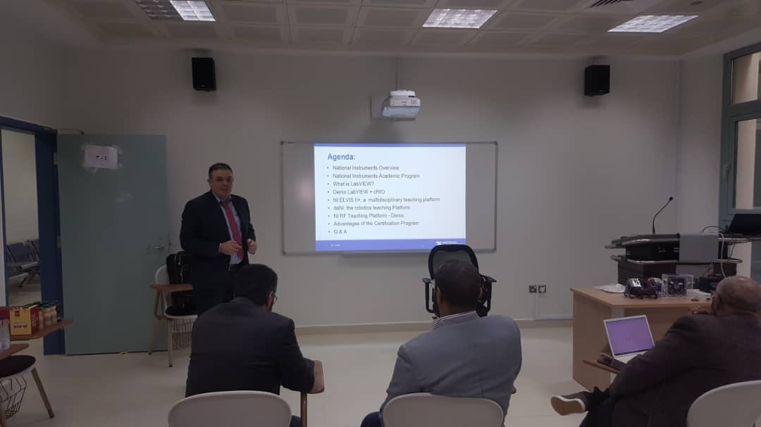 تماشياً مع رؤية الوطن (٢٠٣٠) والتي تتضمن زيادة أعداد المهندسين والتقنين السعوديين واستعداداً لتفعيل برنامج الهندسة الميكانيكية بكلية الهندسة بوادي الدواسر . أقام قسم الميكانيكية ورشة عمل وحلقة نقاش عن برنامج lab view واستخداماته المختلفة في التجارب المعملية والأبحاث قدم حلقة النقاش : المهندس / رالف صعب , والمهندس احمد سمير من شركة المعدات الوطنية National instrument . وفتتح المهندس / أحمد سمير , حلقة النقاش قائلاً : بناء على العرض التقديمي المقدم لجامعتكم الموقرة عن البرامج الأكاديمية والاِعتماد الأكاديمي الخاصة ب (NIA Certification center & Accreditation) سيتم تغطية النقاط الهامة الآتية لتكون محاور حلقه النقاش :