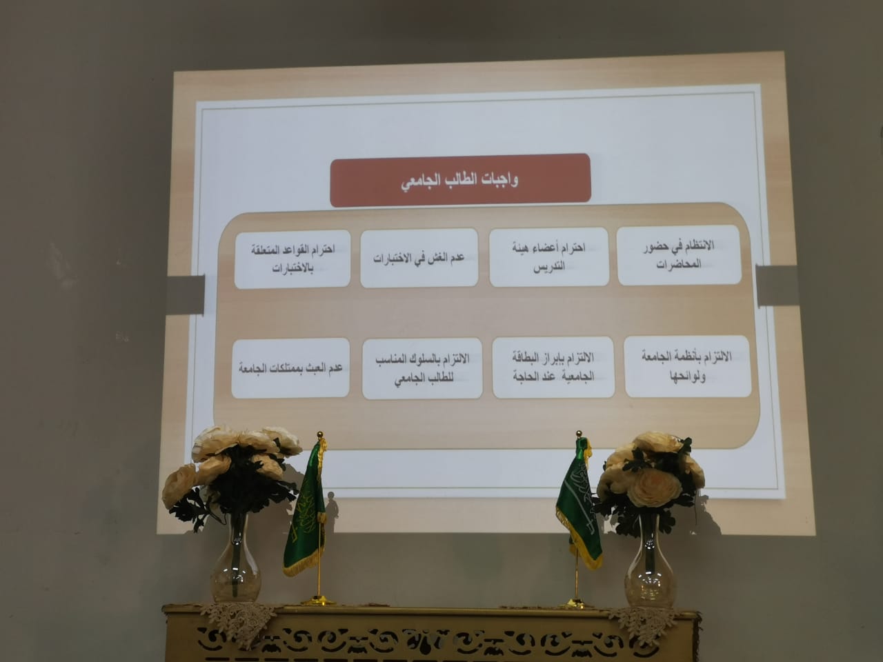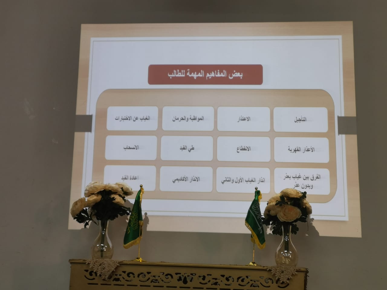 يعد الطالب الجامعي المحور الأساسي في عملية الارشاد الأكاديمي.لذلك حرصت عمادة السنة التحضيرية على الاهتمام بطالباتها وارشادهم وتوجيههم ومساعدتهم لتحقيق النجاح بدراستهم الجامعية. لذلك أقامت وحدة الارشاد الأكاديمي فعالية من خلال البرنامج التثقيفي في الارشاد الأكاديمي بعنوان حقوق وواجبات الطالب الجامعي يوم الثلاثاء ٣/٢/١٤٤٤هـ .تحدثت فيها أ. رجاء عن مفهوم الارشاد الأكاديمي ,وعن حقوق وواجبات الطالب الجامعي, وبعض المصطلحات الهامة مثل التأجيل والأعتذار والفرق بينهما, والغياب والحرمان,والانقطاع. وقد أجابت المدربة على بعض التساؤلات التي طرحت من الطالبات,مما أدى إلى إثراء الدورة والاستفادة منها.
