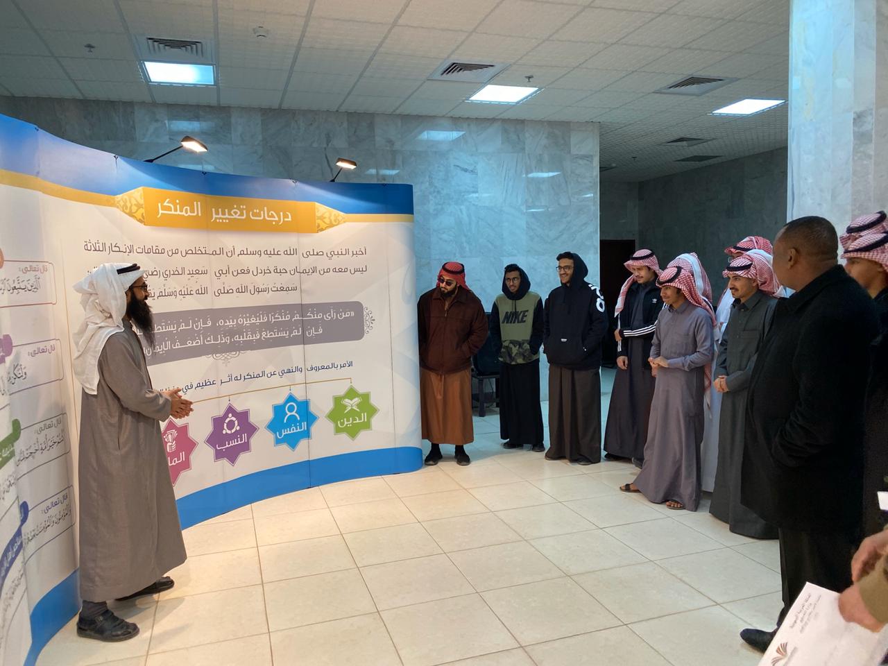 كما حضر الطلاب معرض لجهود هيئة الأمر بالمعروف والنهي عن المنكر وقد استمعوا لشرح أ. منصور الطاسان مسؤول المعرض وقد أشار إلى أن الهيئة تقدم العديد من الخدمات من أهمها:خدمة مكافحة السحر والشعوذة والمساهمة في ضبط من يدعي القيام بها، وخدمة مكافحة المنكرات العامة وهي خدمة تقدم للمحافظة على الآداب الشرعية والنظم المرعية، والمساهمة في ضبط مرتكبي المخالفات وإحالتها إلى جهة الاختصاص، وخدمة مكافحة الجرائم المعلوماتية وهي خدمة تقدم لمكافحة الاعتداء على المعلومات أو المحادثات أو الصور الخاصة بالأشخاص ونشرها في وسائل تقنية المعلومات لغرض التشهير أو لإلحاق الضرر بأصحابها.