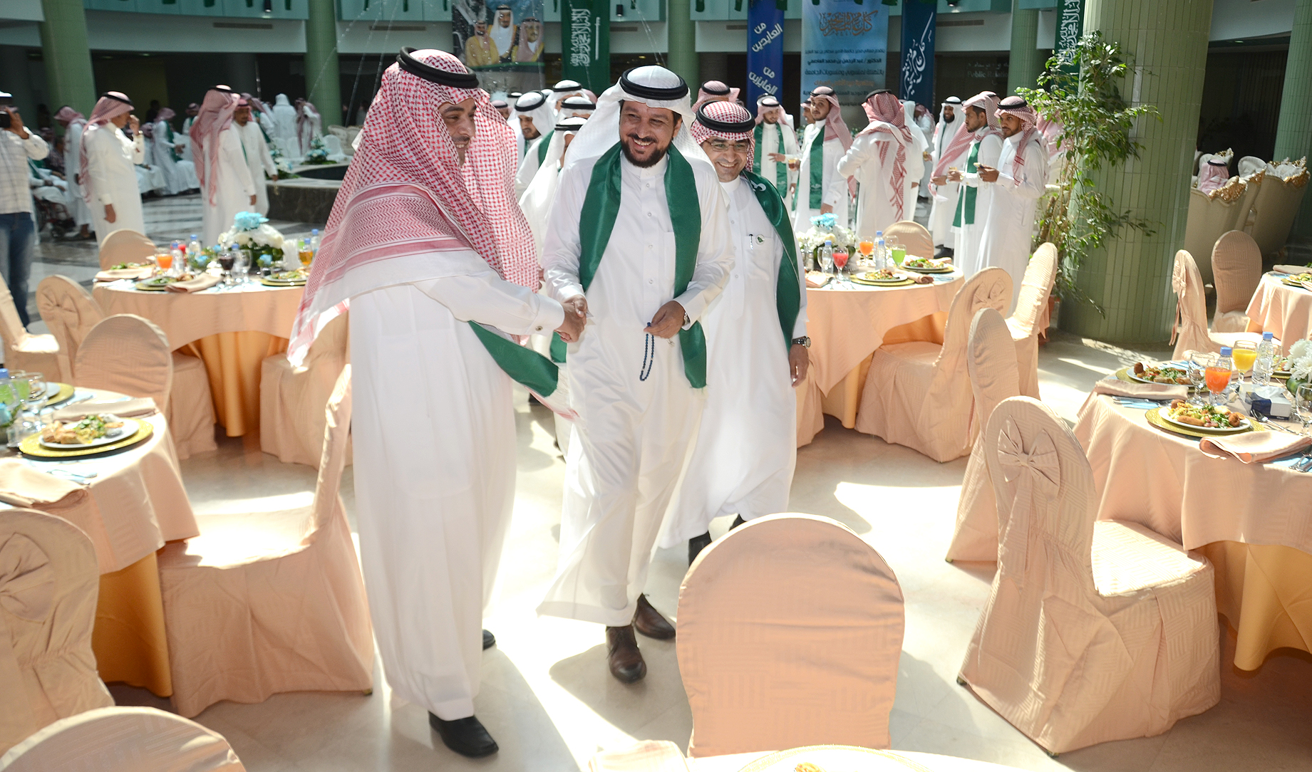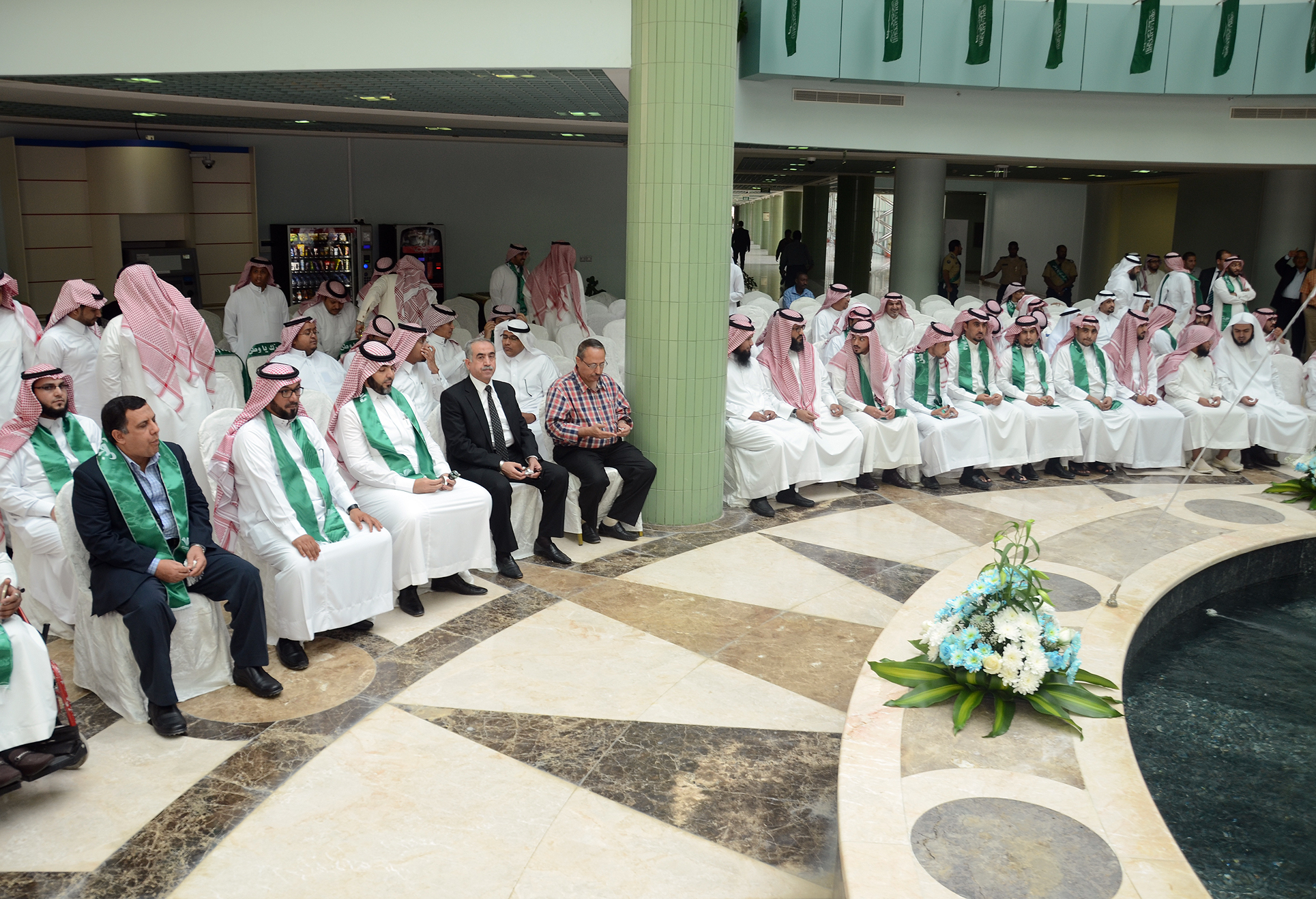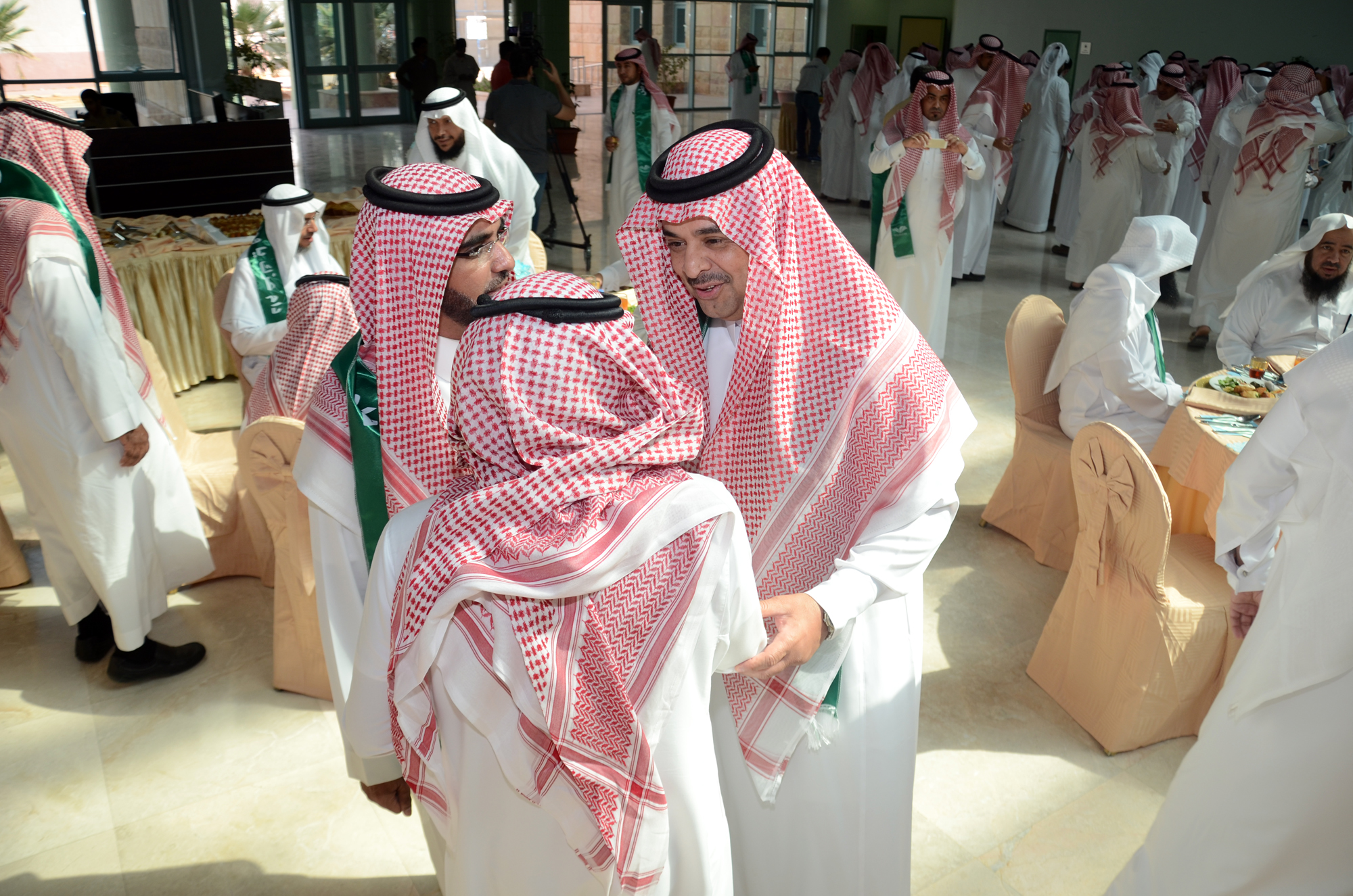 وأوضح وكيل الجامعة الدكتور عبد الله الجمعة أن هذه المناسبة المتمثلة في اليوم الوطني تعد ذكرى عزيزة نسترجع فيها عبق الماضي ونستلهم بها أفق المستقبل، فمنذ توحيد هذه الأرض المباركة ونحن نشهد كل عام قفزات نوعية في جميع المجالات التنموية التي نفخر بها والتي جعلت مملكتنا الغالية تزاحم ركب الحضارة والتقدم.
