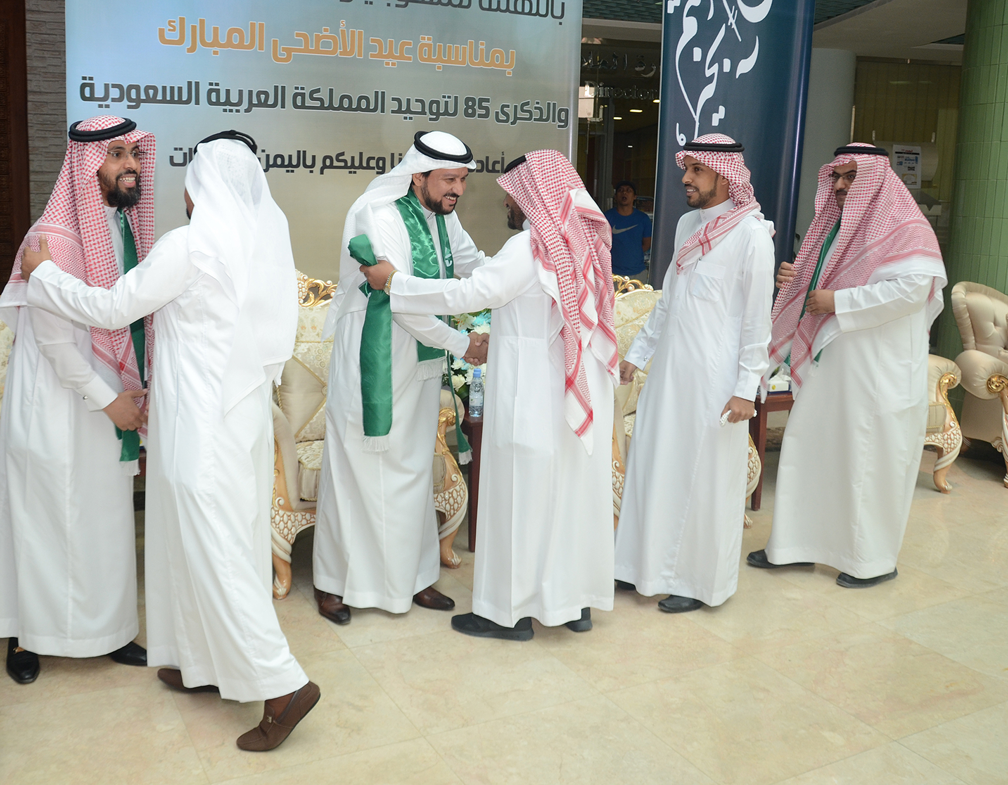 ويأتي حرص إدارة العلاقات العامة والإعلام على إقامة حفل المعايدة هذا العام والذي يتزامن مع الاحتفاء باليوم الوطني للملكة العربية السعودية، حيث حرصت الإدارة على إبراز المعايدة والتهنئة، وإبراز مظاهر اليوم الوطني للمملكة، ذلك اليوم الذي أعلن فيه الملك عبد العزيز رحمه الله توحيد أجزاء البلاد في دولة حديثة تأخذ بزمام النهضة والتقدم حاملة راية التوحيد والإسلام تحمل اسم المملكة العربية السعودية.