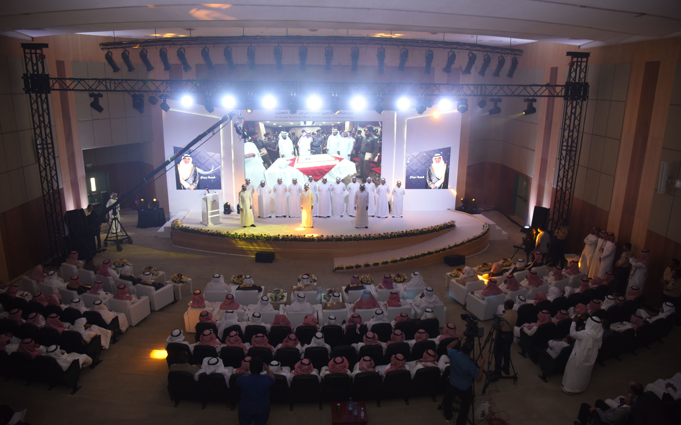 عقب ذلك عرض أوبريت إنشادي من كلمات الأستاذ جمال الحمداء ومتابعة واشراف الأستاذ راشد العسكر والأستاذ عمر العبدالله والأستاذ محمد بن حسين احتفاءً بمعالي نائب وزير التعليم ، ثم ألقى الشيخ عبد العزيز بن عبد الرحمن الداعج –والذي يمثل شركاء الجامعة- عبر فيها عن شكره وتقديره لمعالي الدكتور العاصمي، معددًا في كلمته مآثره وما لمسه من نبل الأخلاق والإخلاص للوطن والنقلة النوعية التي نقل فيها الدكتور العاصمي الجامعة لتصل إلى ماوصلت عليه كجامعة لها دورها الريادي في المجال الأكاديمي والبحثي وكذلك دورها الهام في خدمة المجتمع المحلي.