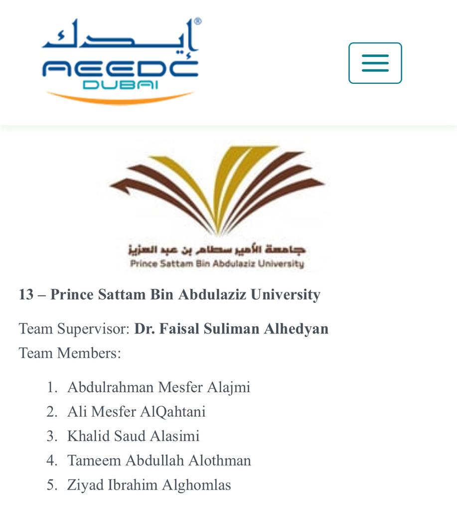 حيث مثل طلاب الكلية في المنافسة التالية أسماءهم: زياد الغملاس ، خالد العاصمي ، تميم العثمان ، علي القحطاني ، عبدالرحمن العجمي بإشراف مشرف النشاط الطلابي الدكتور فيصل الهديان حيث وصل الطلاب إلى المراحل الأخيرة من المسابقة.