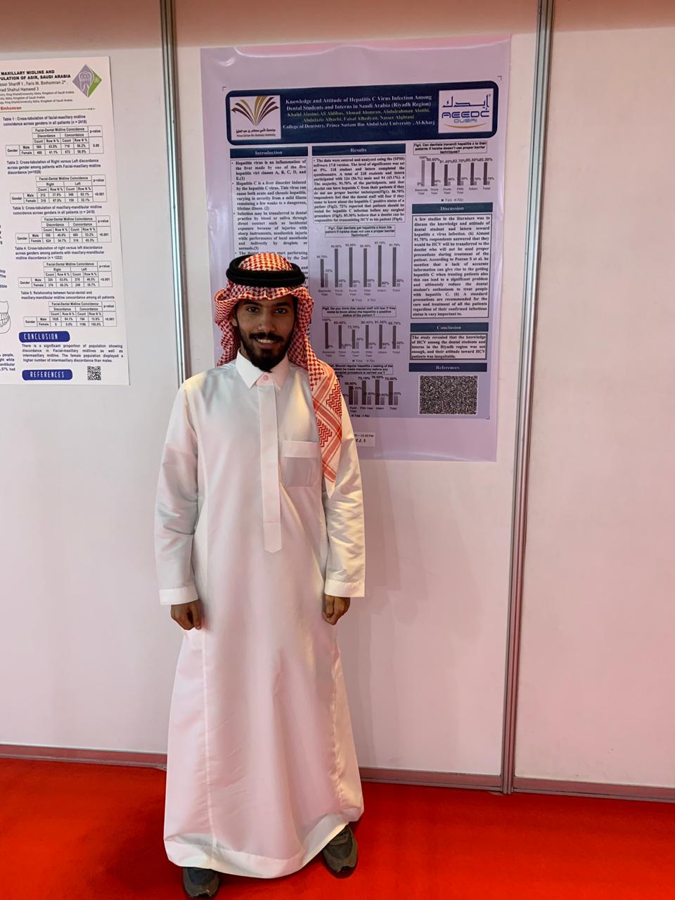 وشارك الطالب خالد بن سعود العاصمي في مؤتمر إيدك بملصق علمي بعنوان (Knowledge and Attitude of Hepatitis C Virus Infection Among Dental Students and Interns in Saudi Arabia)