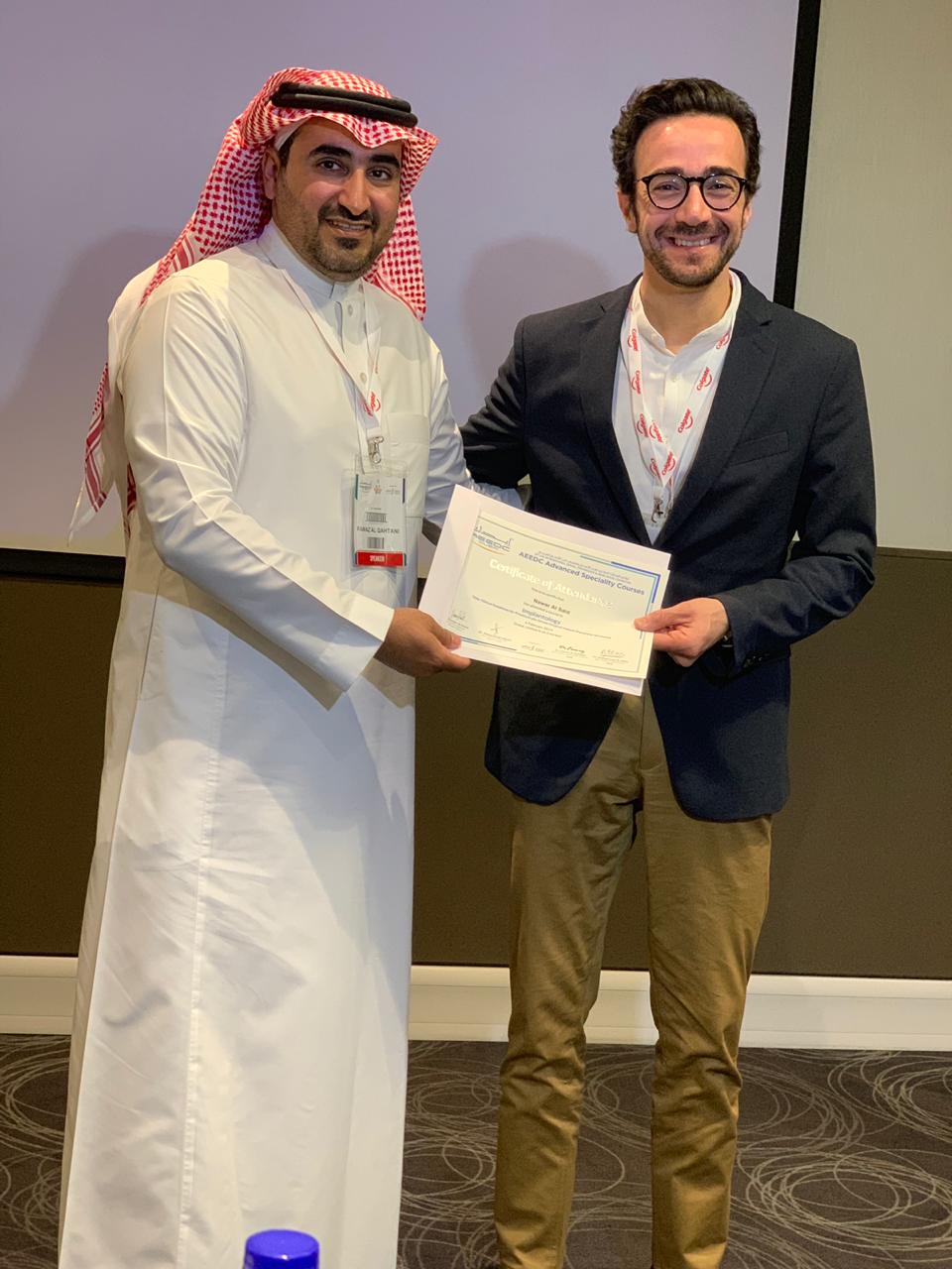 وقدم الدكتور فواز القحطاني أستاذ مشارك في تخصص الإستعاضة السنية وزراعة الأسنان بقسم الإستعاضة السنية بكلية طب الأسنان بجامعة الأمير سطام بن عبدالعزيز بتقديم ورشة عمل بعنوان (الطرق الحديثة بعلم زراعة الأسنان) والتي امتدت ليومين خلال المؤتمر وتم تكريمه في نهاية الورشة على جهوده في إنجاح الورشة من قبل اللجنة المنظمة.