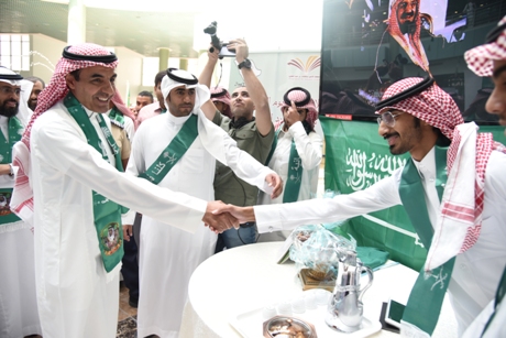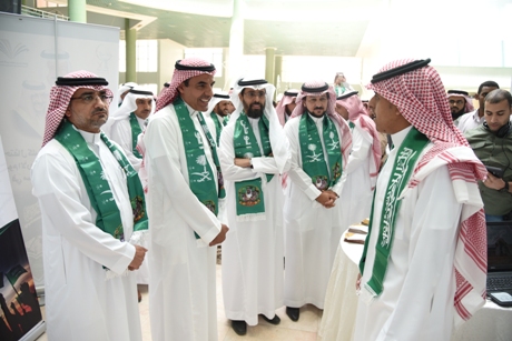 ثم ألقى معالي مدير الجامعة الدكتور عبدالرحمن العاصمي كلمة بهذه المناسبة الغالية رفع فيها أجمل عبارات التهنئة لمقام خادم الحرمين الشريفين الملك سلمان بن عبدالعزيز ولولي عهده الأمين صاحب السمو الملكي الأمير محمد بن نايف بن عبدالعزيز ولولي ولي العهد صاحب السمو الملكي الأمير محمد بن سلمان بن عبدالعزيز ، وذكر معاليه أهمية استشعار نعمة الوطن ، والإنجازات الضخمة التي قدمها الوطن في سرعة مذهلة جعلت المملكة العربية السعودية درة في جبين الدول .