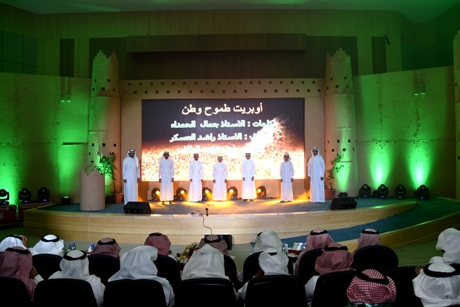 بعد ذلك استمتع الحضور بأوبريت ( طموح وطن ) من كلمات الأستاذ جمال بن حمد الحمداء مساعد عميد شؤون الطلاب للأنشطة الطلابية ، ومتابعة وإخراج الأستاذ راشد بن محمد العسكر مدير الأندية الطلابية ، ومشاركة عدد من طلاب الجامعة .