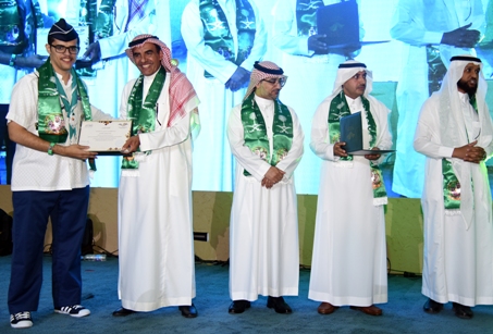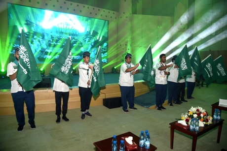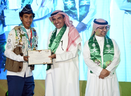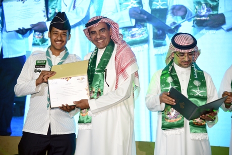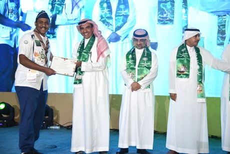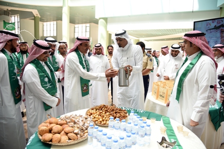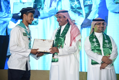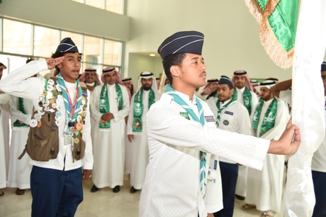 حيث أدى مجموعة طلاب من جوالة الجامعة السلام الملكي السعودي .