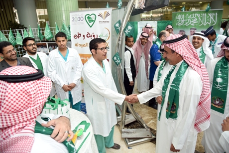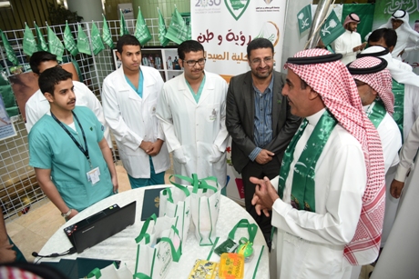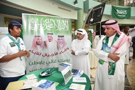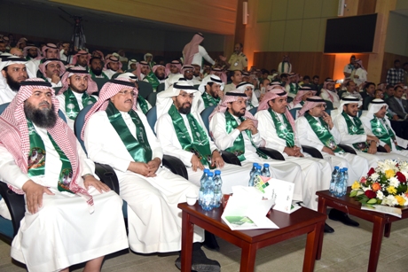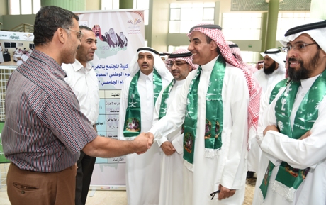 وأكد على أهمية المشاركة البناءة في خدمة الوطن الذي قدم لنا الكثير وهو يحتاج منا الكثير ، وكل ما نبذله في سبيله قليل في حقه . كما أشاد بدور جنودنا المرابطين البواسل في الحد الجنوبي ودورهم العظيم في خدمة دينهم وقادتهم ومقدساتهم ووطنهم ، ومبينا أنهم يسطرون ملحمة وطنية من أجلِّ الملاحم . ثم ختم كلمته باعتزازه وثنائه على مشاركات طلاب الجامعة وكليات الجامعة في هذه المناسبة العزيزة إذ استمرت برامج كليات الجامعة أسبوعا كاملا أبرز فيها الطلاب شعورهم تجاه الوطن وشاركوا بعدد من الأفكار والمشاريع التي يطمحون خدمة الوطن من خلالها .