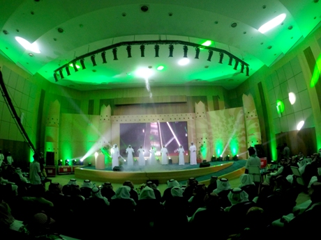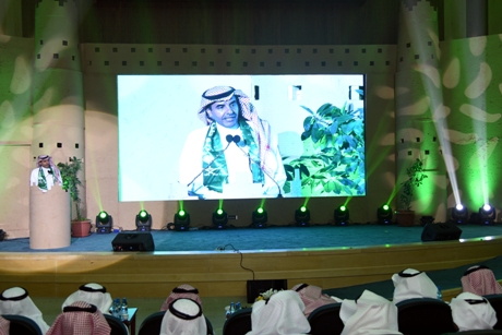 تلا ذلك عرض فيلم وثائقي يعرض لمحات مختصرة عن النهضة السعودية بعنوان ( إلى القمة يا وطني) متابعة وإعداد الأستاذ عمر العبدالله مدير الإدارة بعمادة شؤون الطلاب .