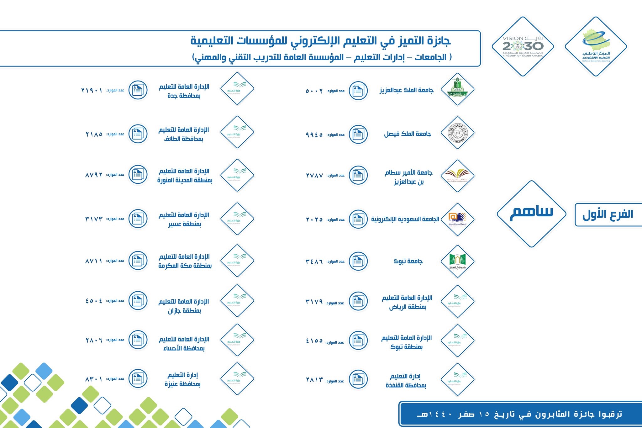 كما حصلت الجامعة في قسم "ساهم" على جائزة التميز في التعليم الإلكتروني في إثراء منصة "شمس" بالموارد التعليمية .