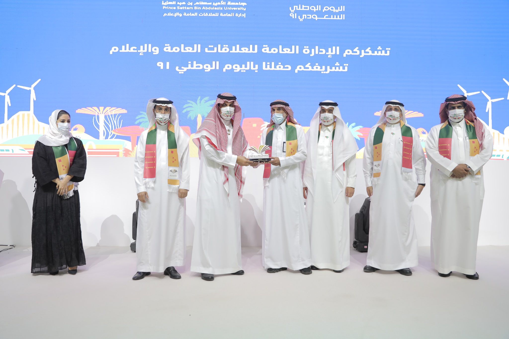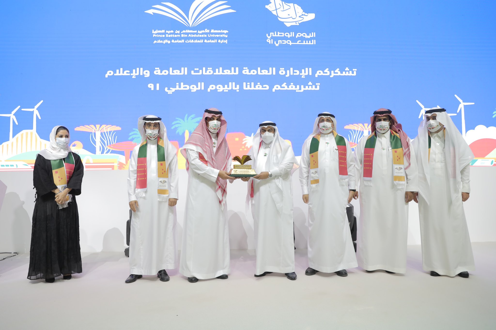 أقامت جامعة الأمير سطام بن عبدالعزيز بالخرج اليوم الأحد احتفالها السنوي باليوم الوطني الـ91 للمملكة العربية السعودية تحت شعار (هي لنا دار) بمسرح الجامعة الرئيس، وذلك بحضور سعادة رئيس الجامعة الأستاذ الدكتور عبدالرحمن بن هلال الطلحي ووكلاء الجامعة وعمدائها وعدد من أعضاء هيئة التدريس والموظفين والطلاب ، وانطلق الحفل بالسلام الوطني السعودي ثم بتلاوة آيات من القرآن الكريم ، ثم قُدم للحضور فقرة رسائل سفراء الوطن ، فعرض أوبريت بعنوان وطن العلم بلوحة غنائية قدمها طلاب السنة التحضيرية عبروا من خلاله عن حب الوطن ومايحققه لهم من تسهيلات في طلب العلم وبناء المستقبل ، تلى ذلك فيلم بعنوان المجد والذي يحكي تاريخ المملكة في ذكرى الوطن وتوحيده على يد جلالة الملك عبدالعزيز بن عبدالرحمن طيب الله ثراه وما تعيشه المملكة العربية السعودية من استقراراً وإزدهاراً وآمناً وآماناً وتقدماً وحضارة ورقياً ونهضة في ظل الجهود الكبيرة من ولاة أمرنا ، ثم قُدم فيديو كليب بعنوان الله معك يادار من إنتاج إدارة العلاقات العامة والإعلام ومن تقديم طلاب الجامعة تعبيراً عن صدق الوفاء وأبلغ الانتماء لوطن شامخ وشعب أبيّ وقيادة رشيدة ، بعد ذلك ألقى سعادة رئيس الجامعة كلمة رفع فيها التهنئة لمقام خادم الحرمين الشريفين الملك سلمان بن عبدالعزيز آل سعود وسمو ولي عهده الأمين حفظهما الله بمناسبة اليوم الوطني الـ91 للمملكة العربية السعودية منوهاً بجهودهما أيدهما الله في الارتقاء بهذه البلاد وتحقيق الإنجازات مبيناً ان المملكة باتت اليوم في مصاف الدول المتقدمة في مختلف المجالات ، واختتم الحفل بتكريم الجميع ، وشهدت فعاليات الاحتفاء معرضاً للتاريخ والحضارة لنشر التراث السعودي بين أبناء الوطن والمقيمين يحكي من خلاله عن حقبة من الزمن الذي عاصره الأجداد وعرض للمقتنيات الأثرية القديمة المتعلقة بالتراث والموروث الشعبي السعودي وجانباً من المأكولات المختلفة بالإضافة إلى معرضاً للسيارات الكلاسيكية يتعرف من خلاله الزوار على تقنيات المحركات في الماضي الأصيل ، يشار إلى أن الجامعة تسعى على تعزيز الهوية الوطنية لدى طلابها وطالباتها ومنتسبيها من خلال إقامة الاحتفاء باليوم الوطني للمملكة والذي يعتبر هو فرحة كل سعودي بالوحدة والأمن والرخاء وإشراك طلبتها للاحتفال بالإنجازات الكبيرة للمملكة مما يصب في رؤية وإستراتيجية وخطط الجامعة التي تسعى من خلالها إلى أن تكون منارة أكاديمية علمية تخدم المجتمع بكافة فئاته وتشارك بفعالية في المناسبات الوطنية.