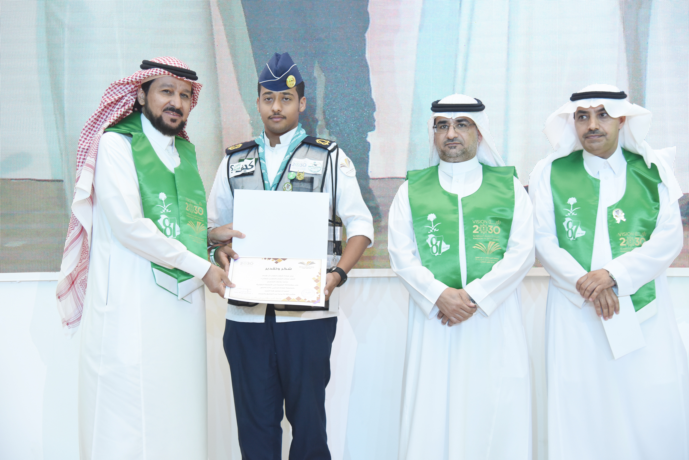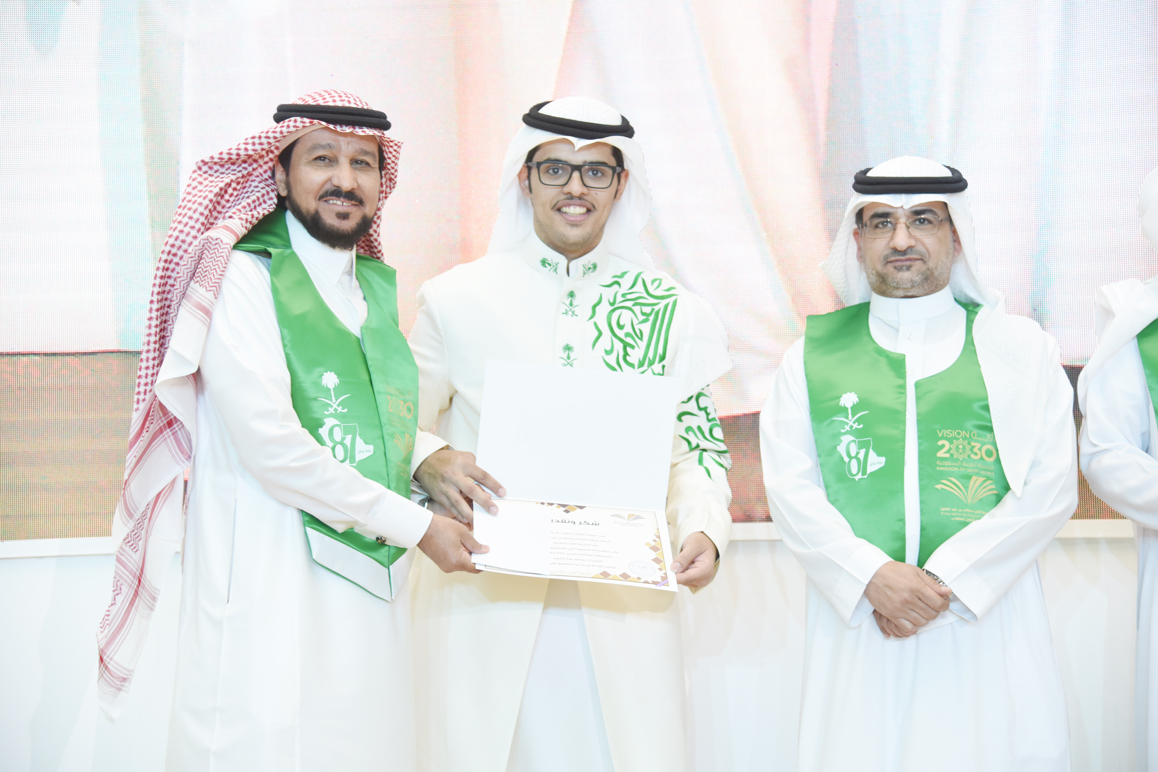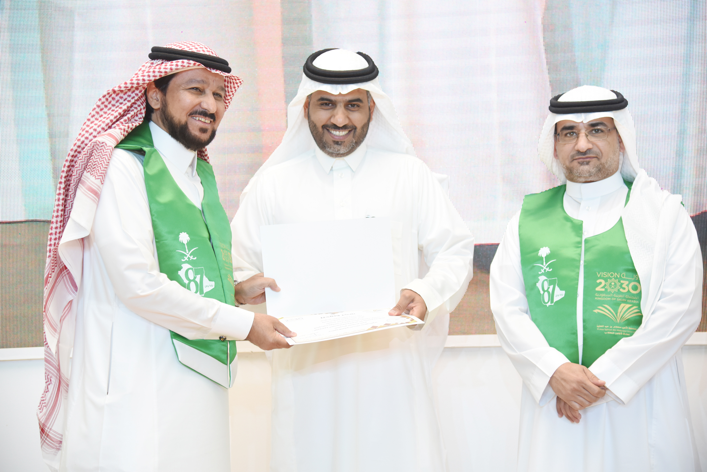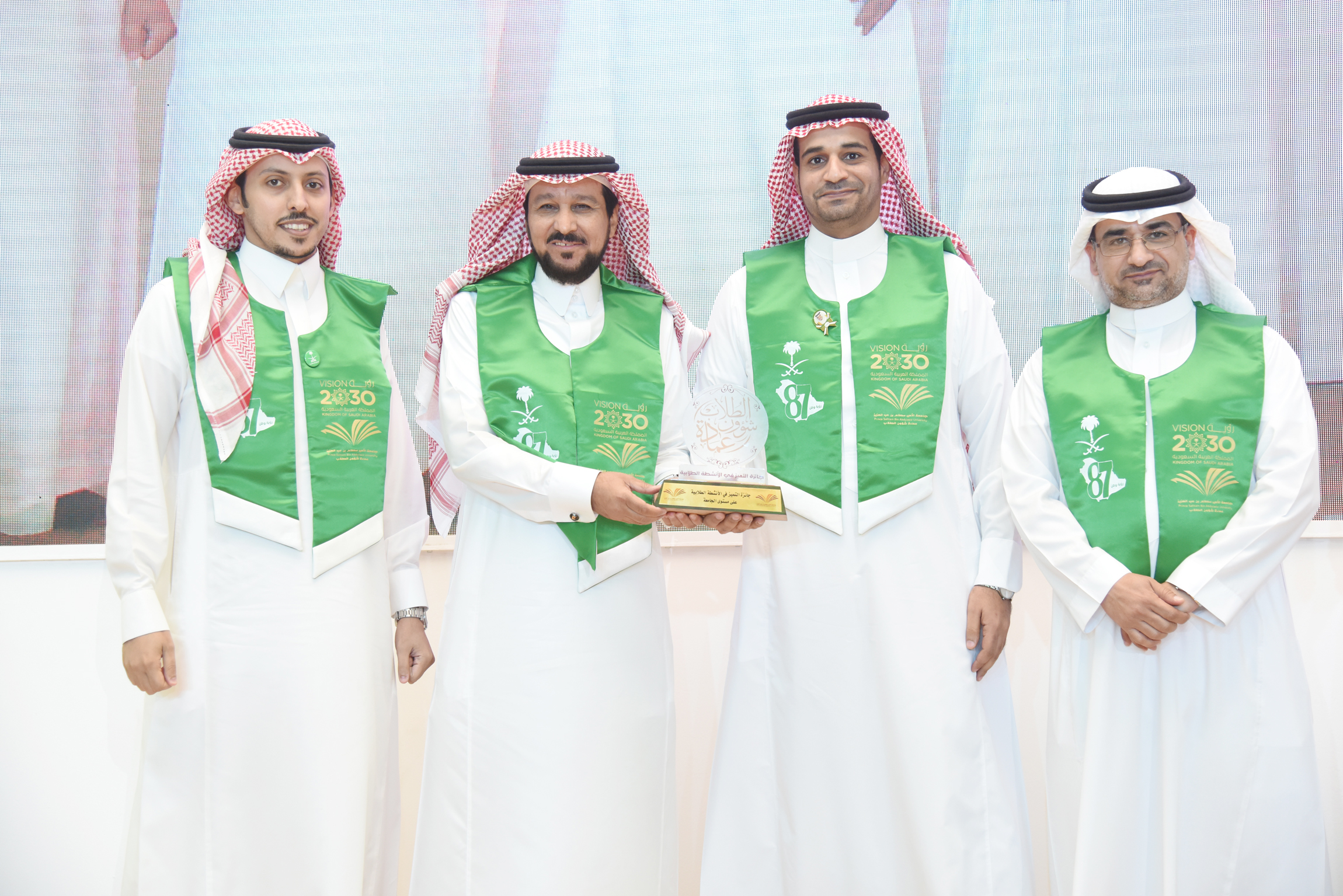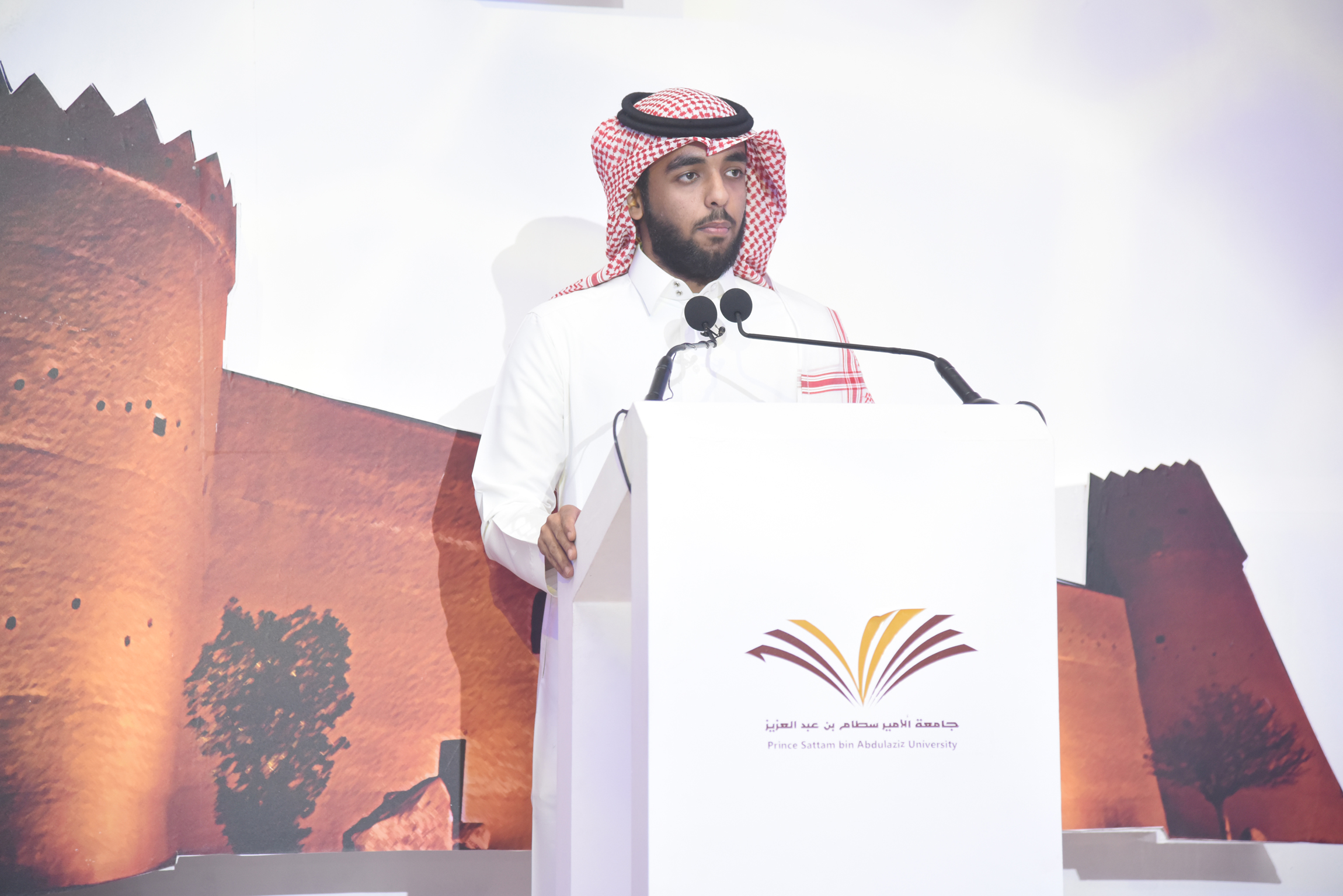 background:white;direction:rtl;unicode-bidi:embed">برعاية معالي مدير جامعة الأمير سطام بن عبدالعزيز أ.د عبدالعزيز بن عبدالله الحامد احتفلت الجامعة ممثلة بعمادة شؤون الطلاب باليوم الوطني السابع والثمانين للمملكة العربية السعودية ذلك صباح اليوم الاثنين 5 / 1 / 1439هـ ، وبحضور وكلاء الجامعة والعمداء وجمع كبير من طلاب ومنسوبي الجامعة، بمسرح إدارة الجامعة بالمدينة الجامعية بالسيح.